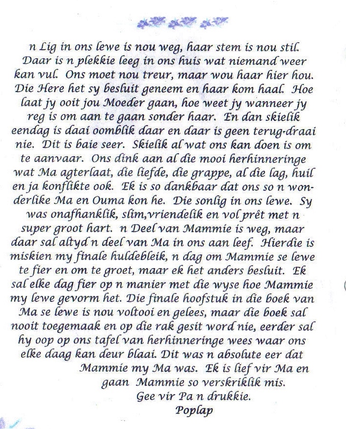 Funeral Programs / Begrafnisbriewe