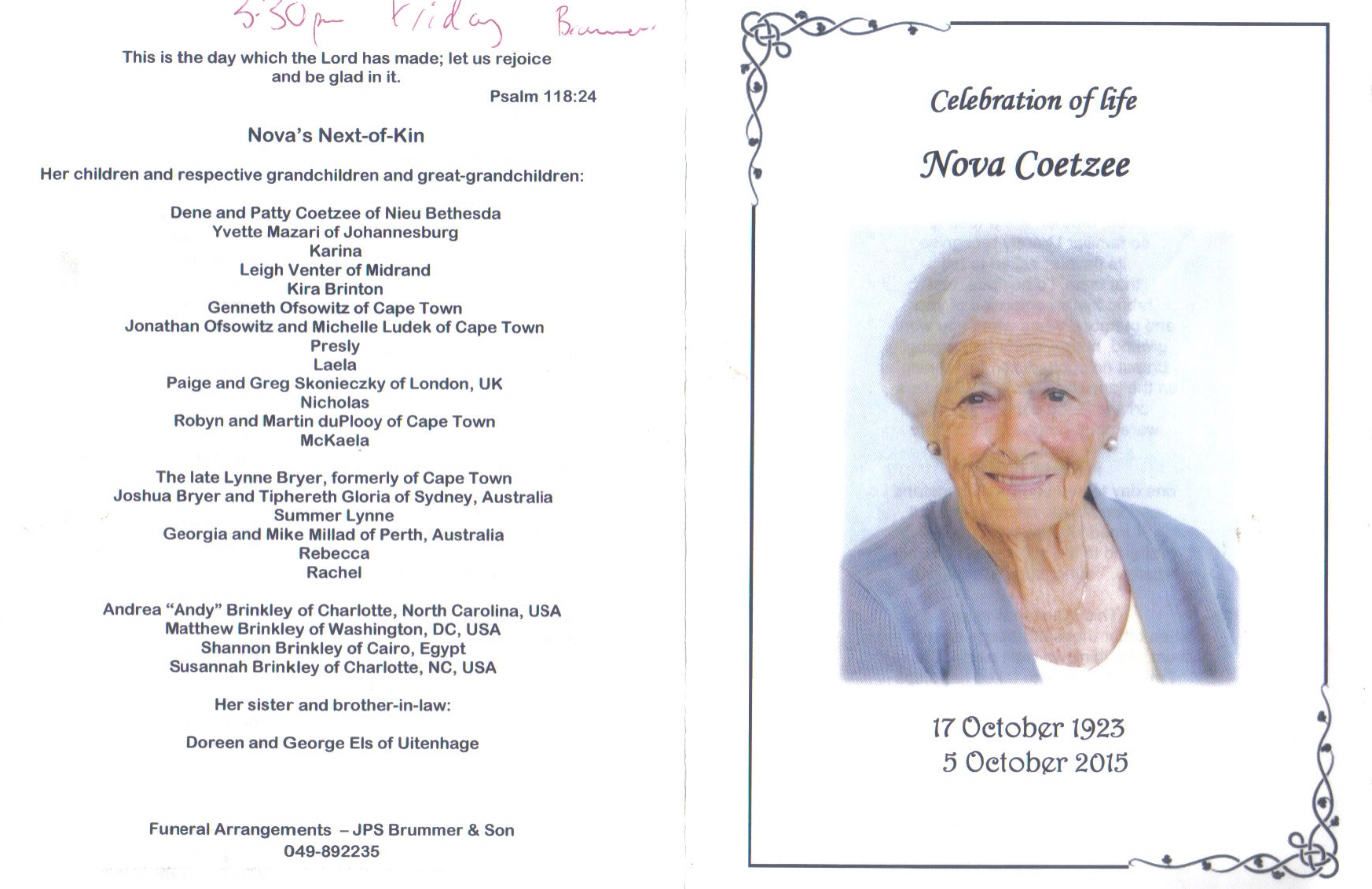 Funeral Programs / Begrafnisbriewe