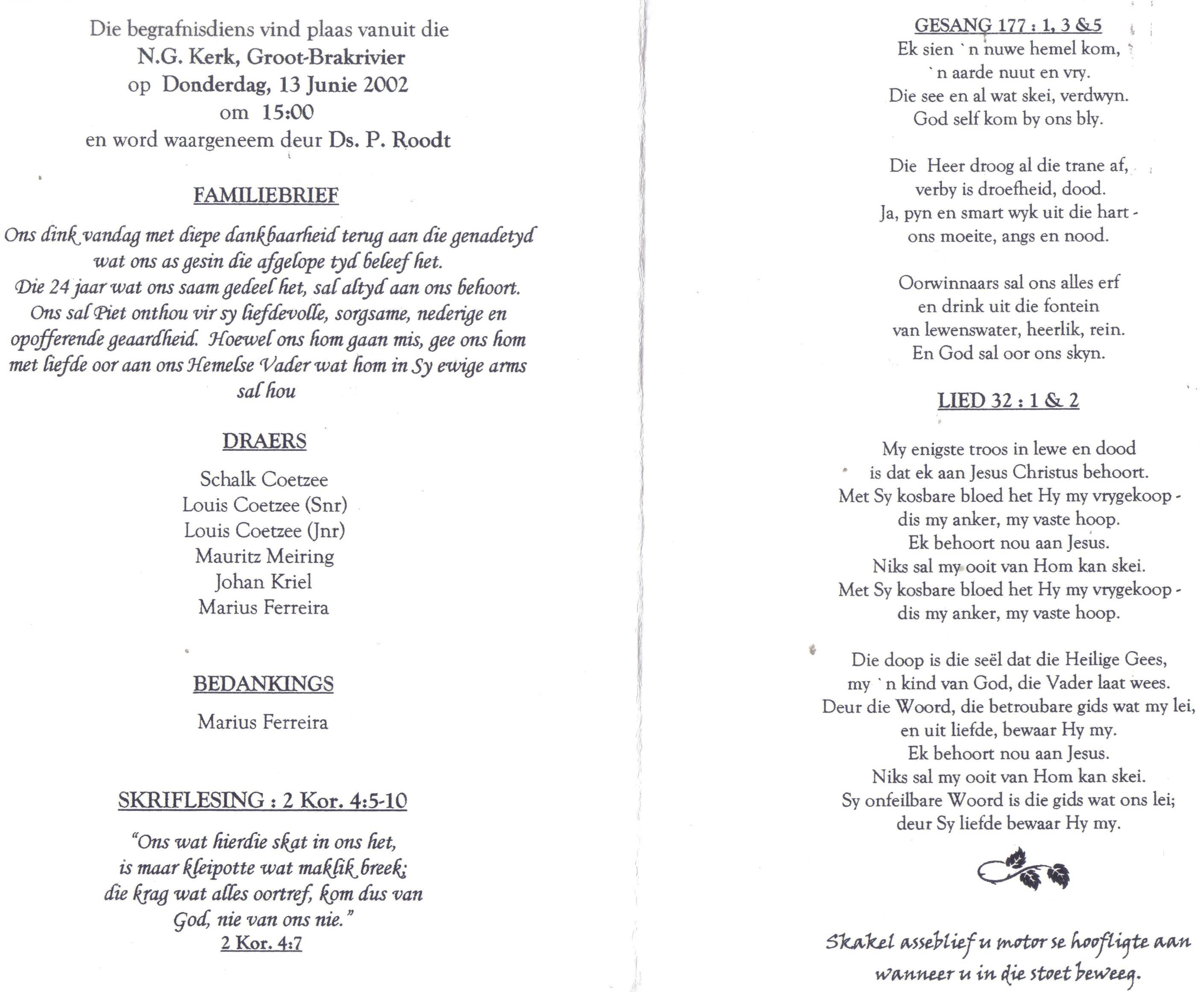 Funeral Programs / Begrafnisbriewe