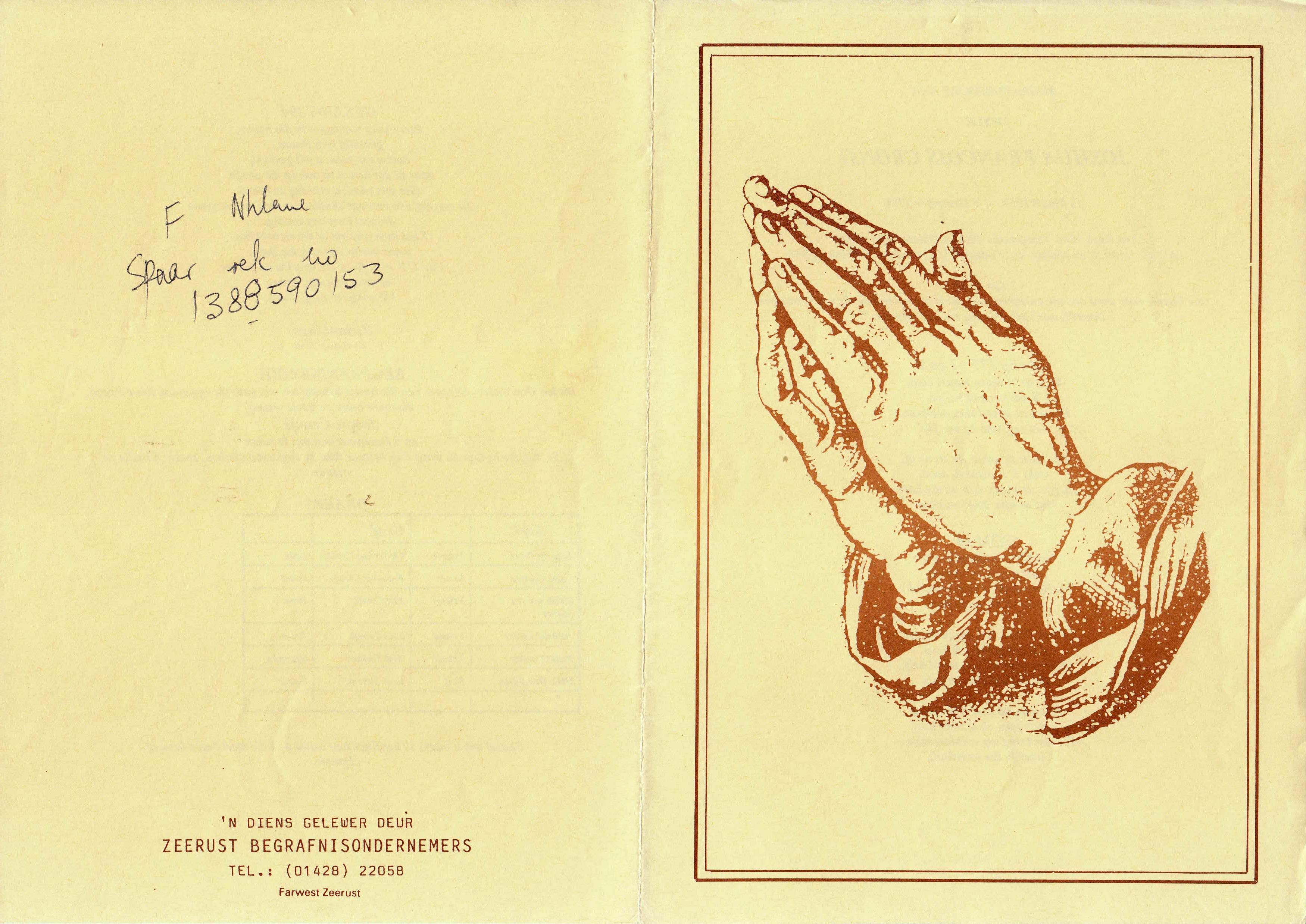 Funeral Programs / Begrafnisbriewe