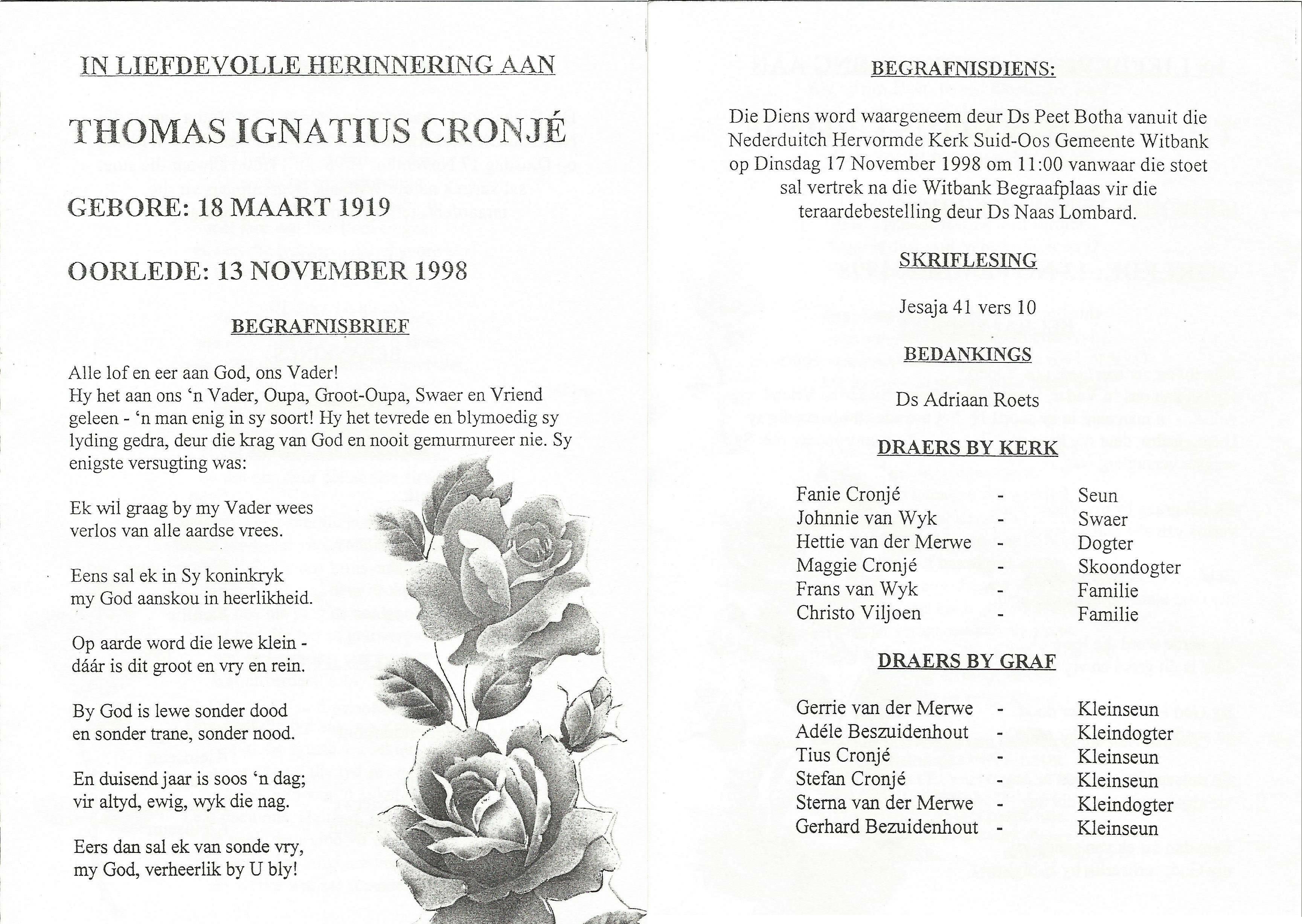 CRONJÉ-Thomas-Ignatius-1919-1998-M