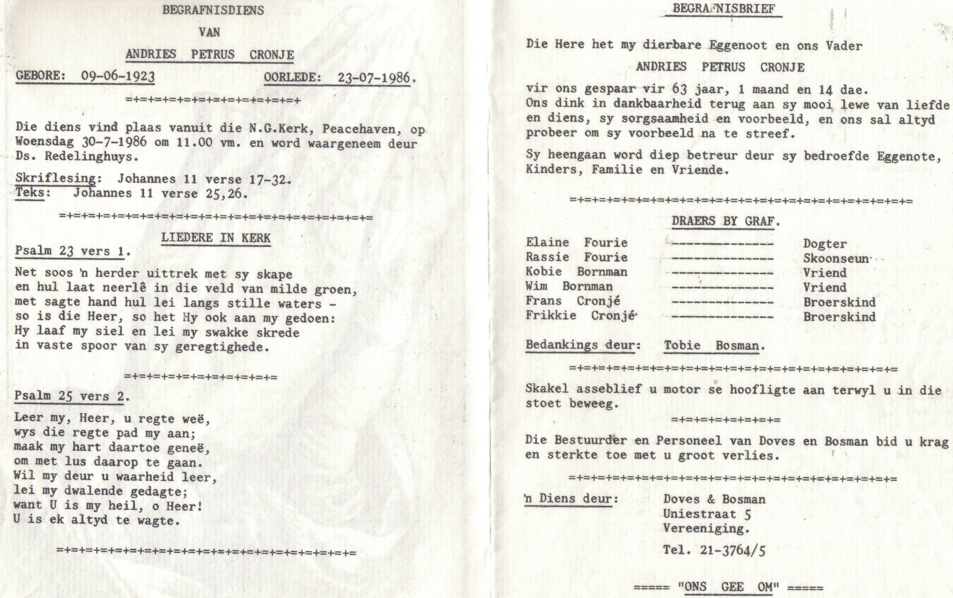 Funeral Programs / Begrafnisbriewe