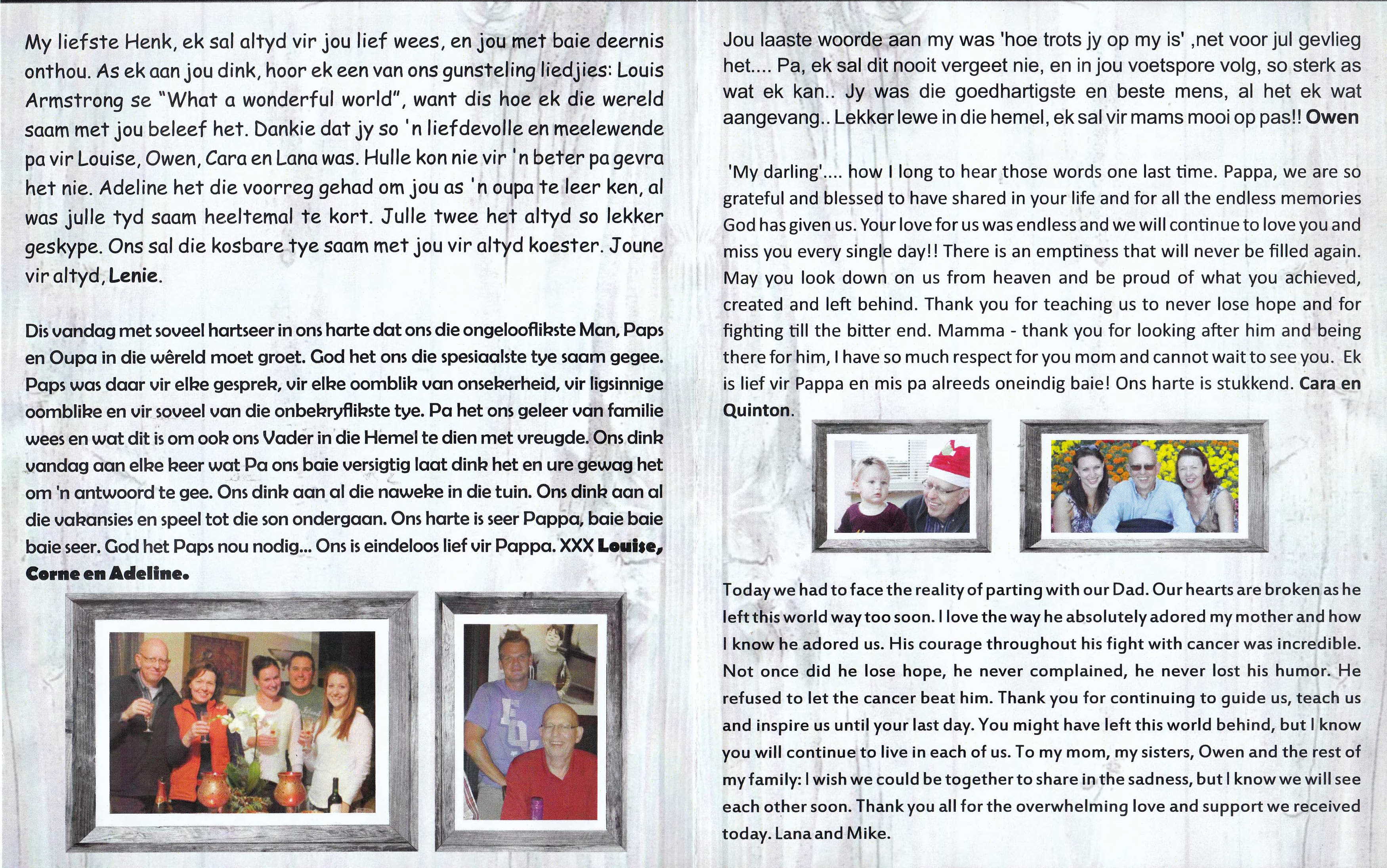 Funeral Programs / Begrafnisbriewe