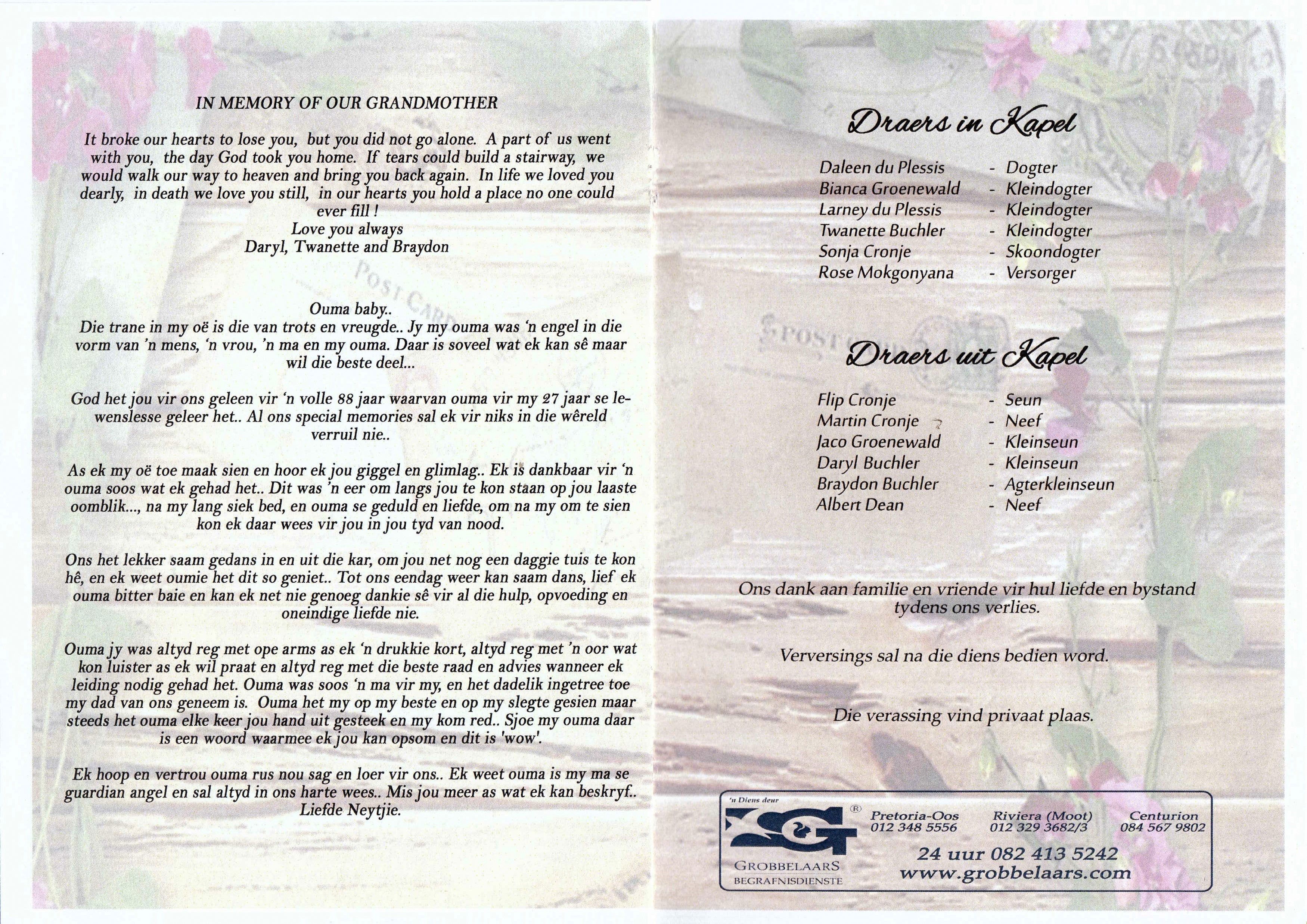 Funeral Programs / Begrafnisbriewe