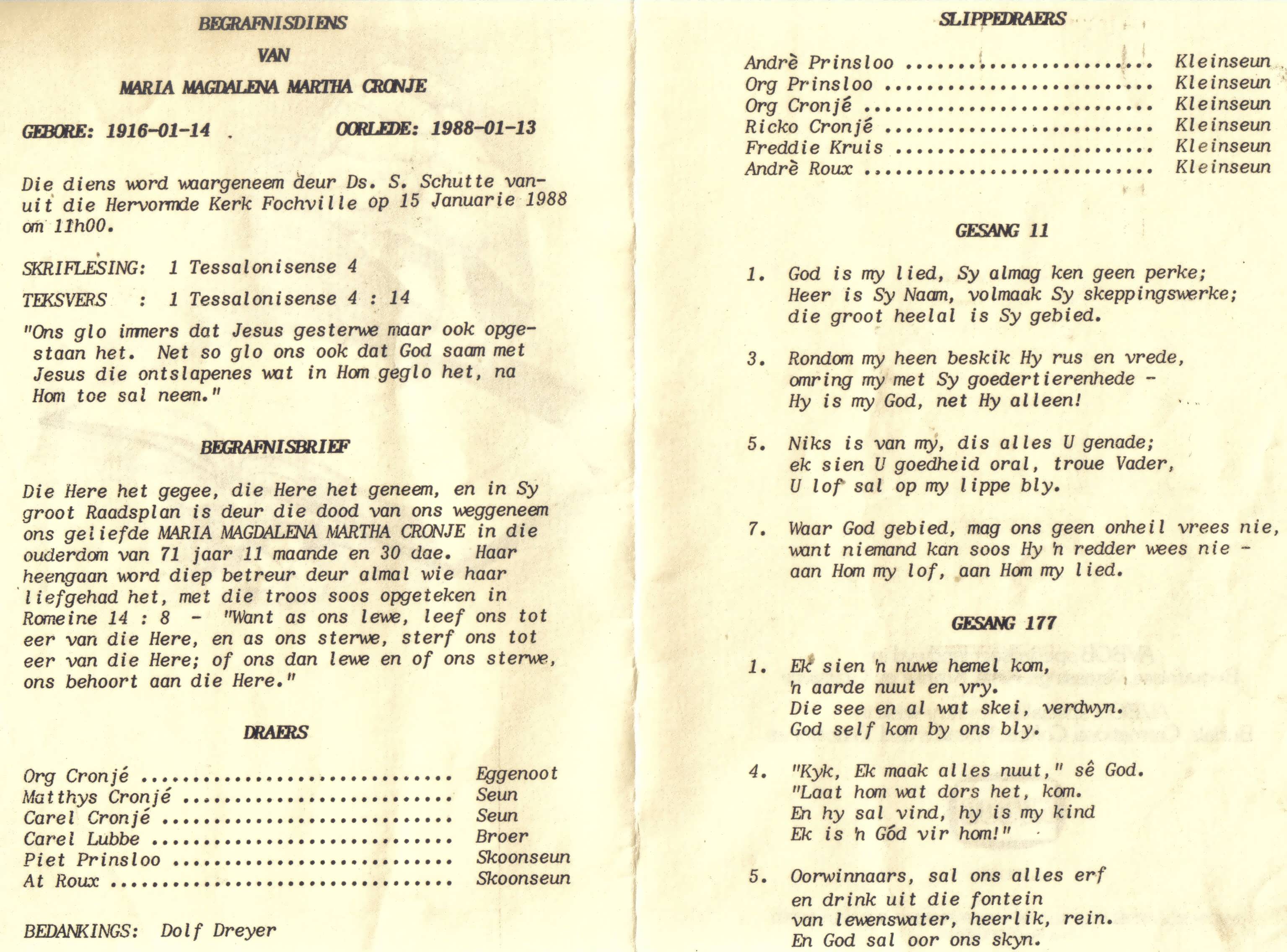 Funeral Programs / Begrafnisbriewe
