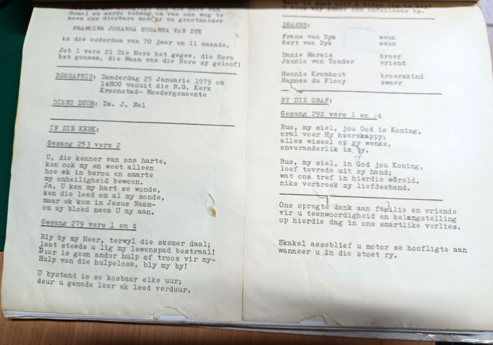 Funeral Programs / Begrafnisbriewe