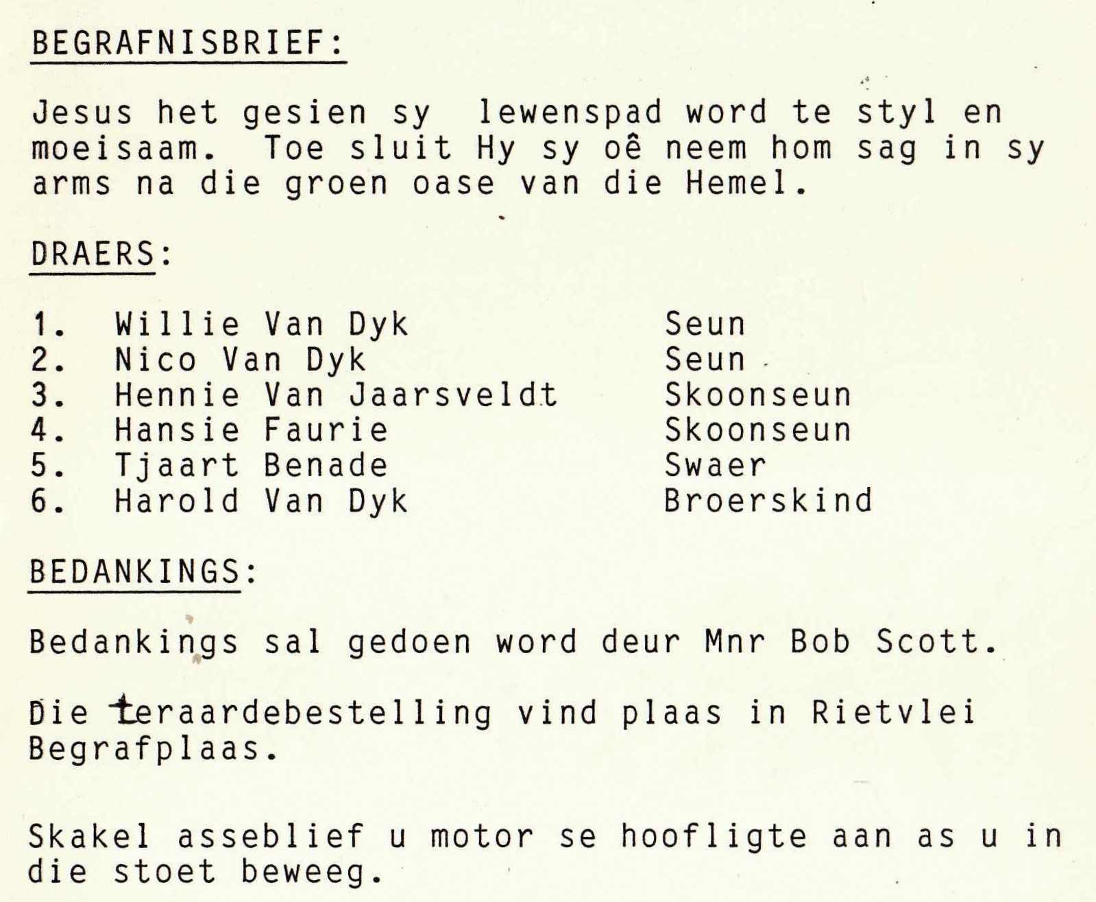 Funeral Programs / Begrafnisbriewe