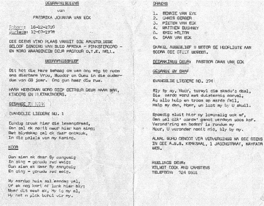 Funeral Programs / Begrafnisbriewe