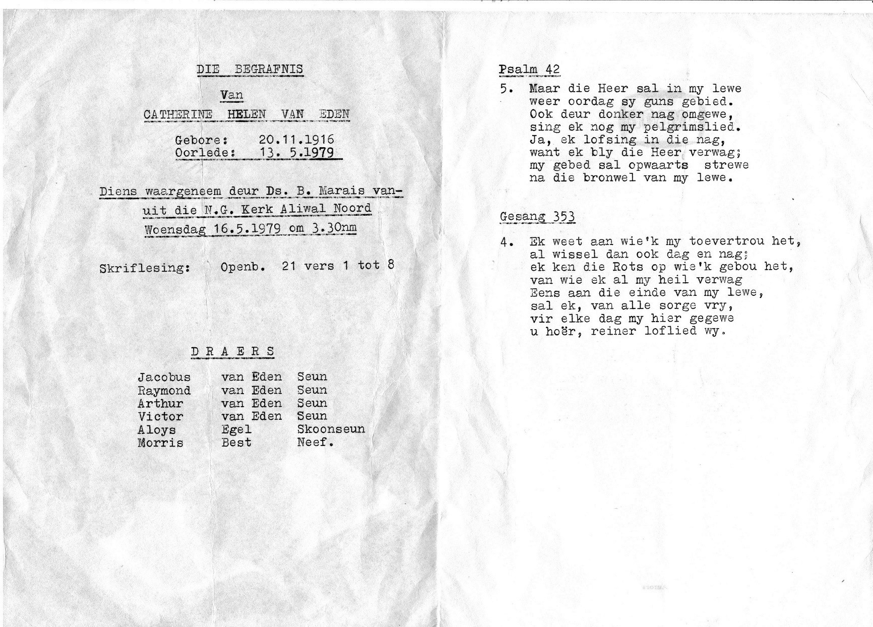 Funeral Programs / Begrafnisbriewe