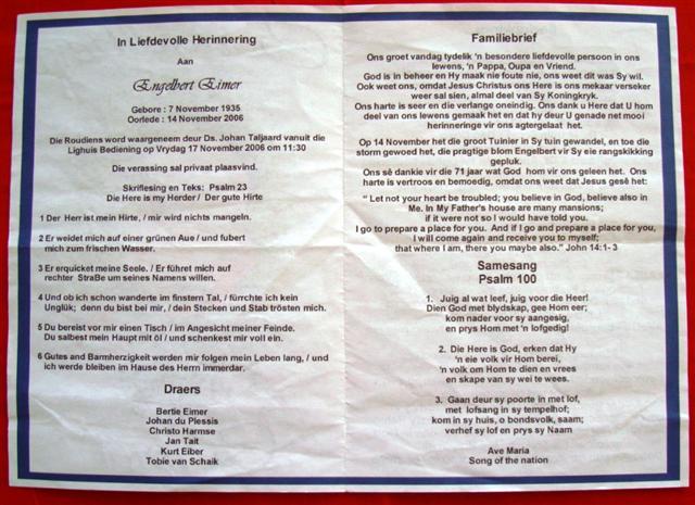 Funeral Programs / Begrafnisbriewe