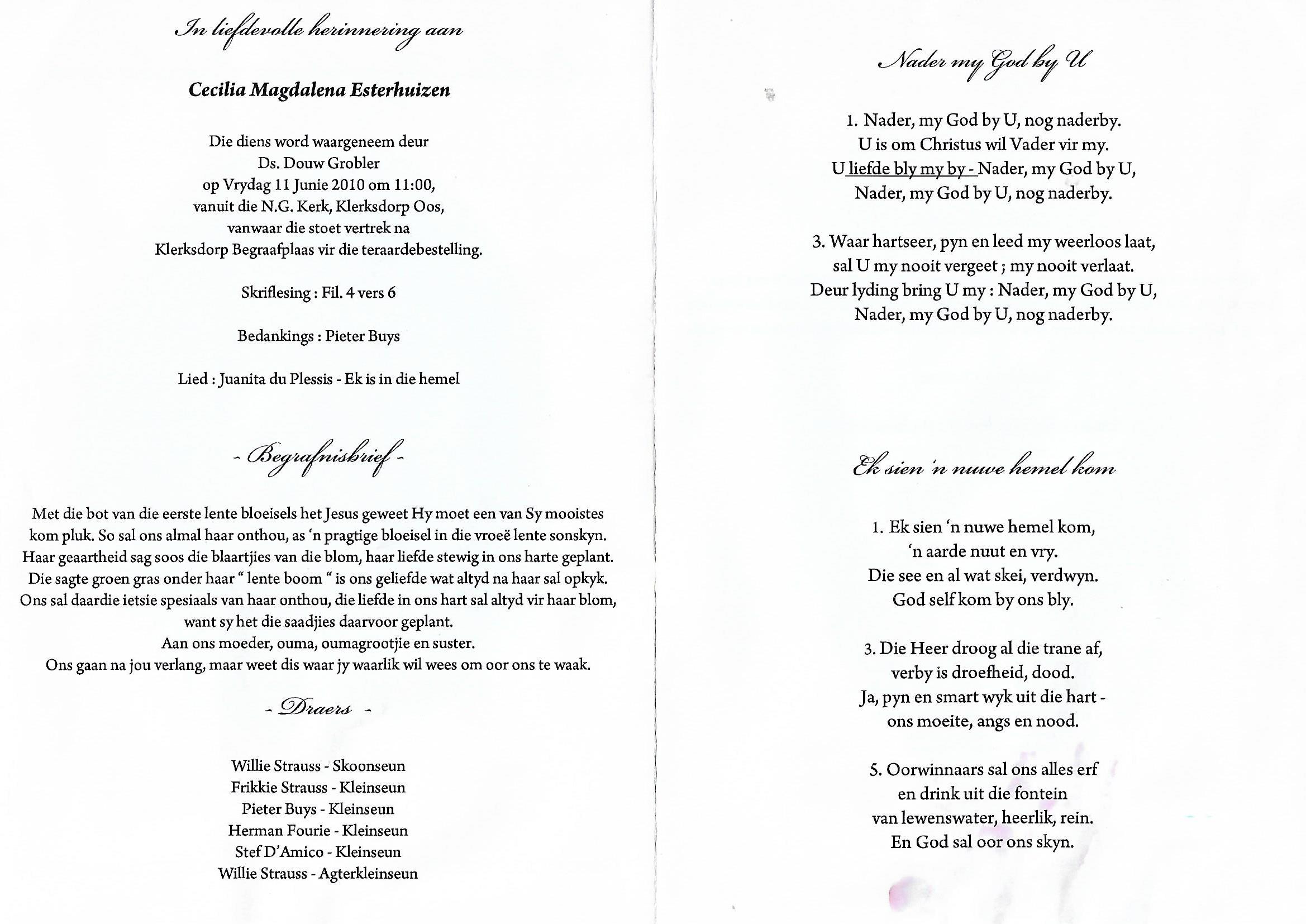 Funeral Programs / Begrafnisbriewe