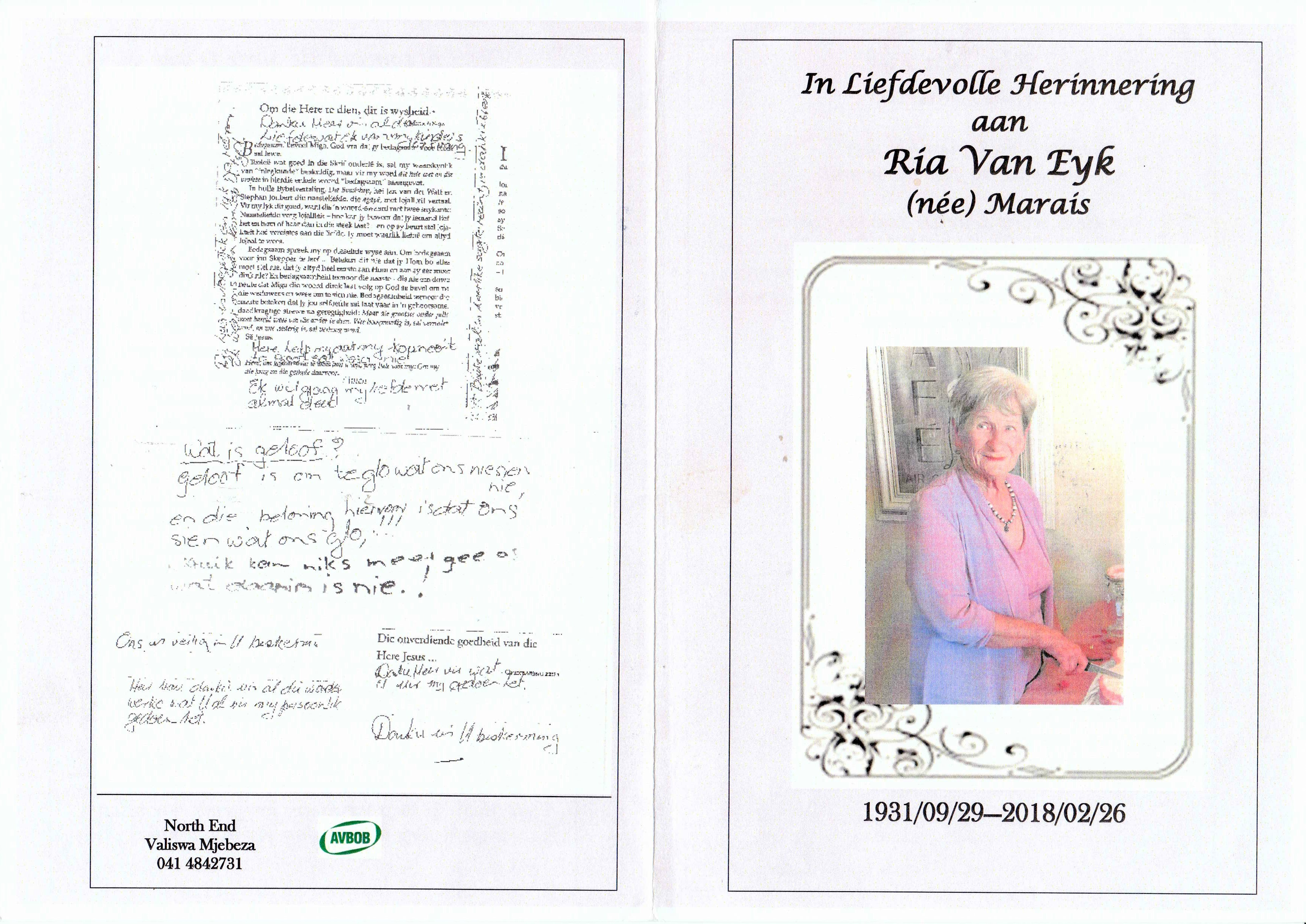 EYK-VAN-Ria-nee-Marais-1931-2018-F