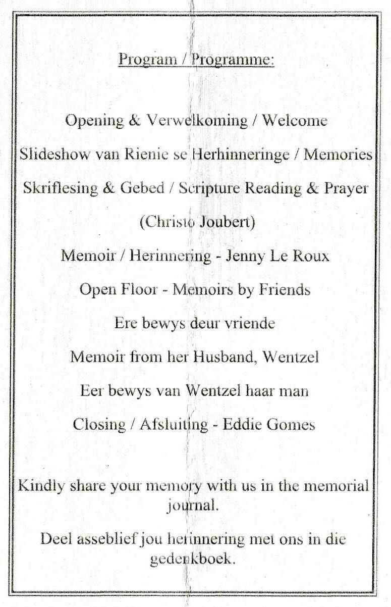 Funeral Programs / Begrafnisbriewe