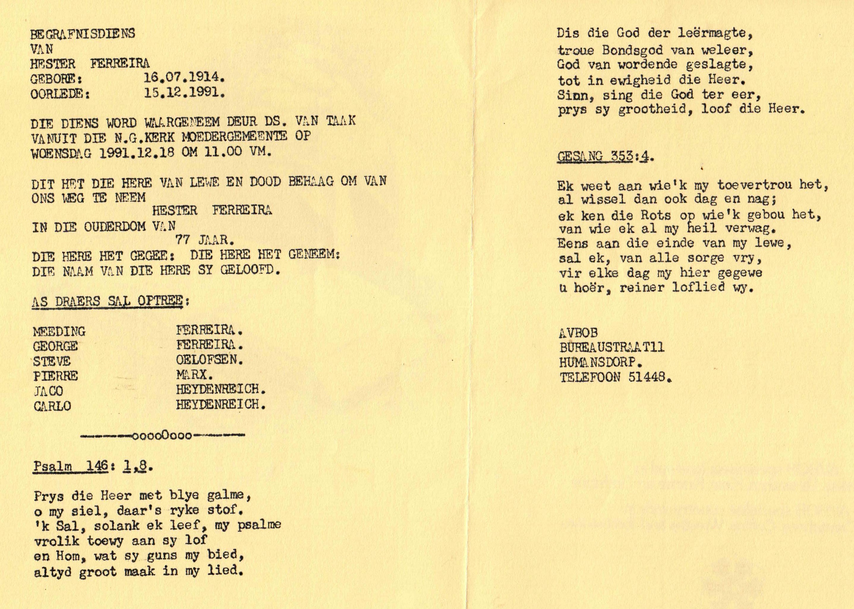 Funeral Programs / Begrafnisbriewe