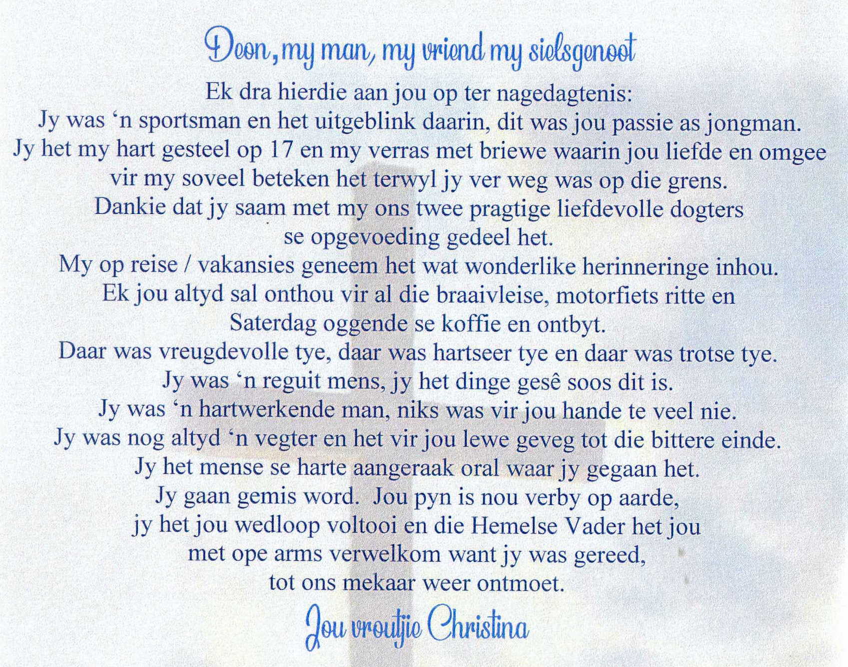Funeral Programs / Begrafnisbriewe