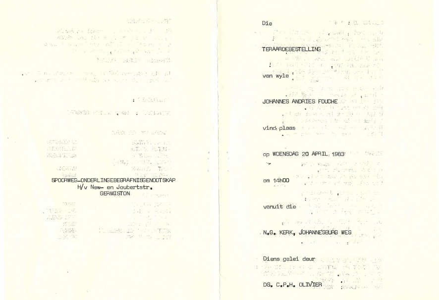 Funeral Programs / Begrafnisbriewe