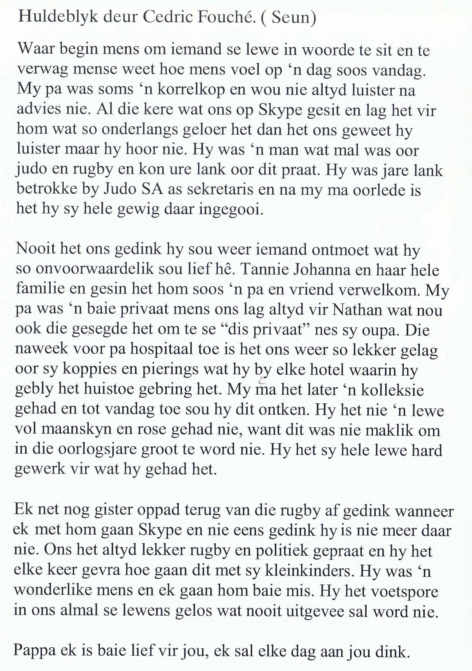 Funeral Programs / Begrafnisbriewe