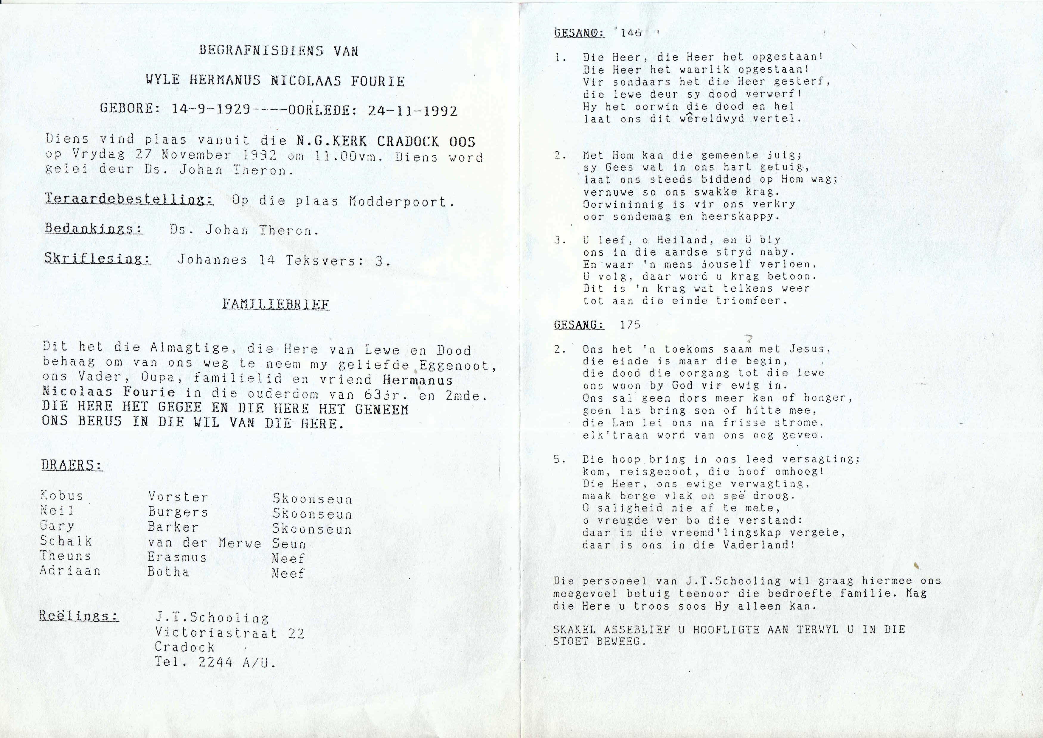 Funeral Programs / Begrafnisbriewe