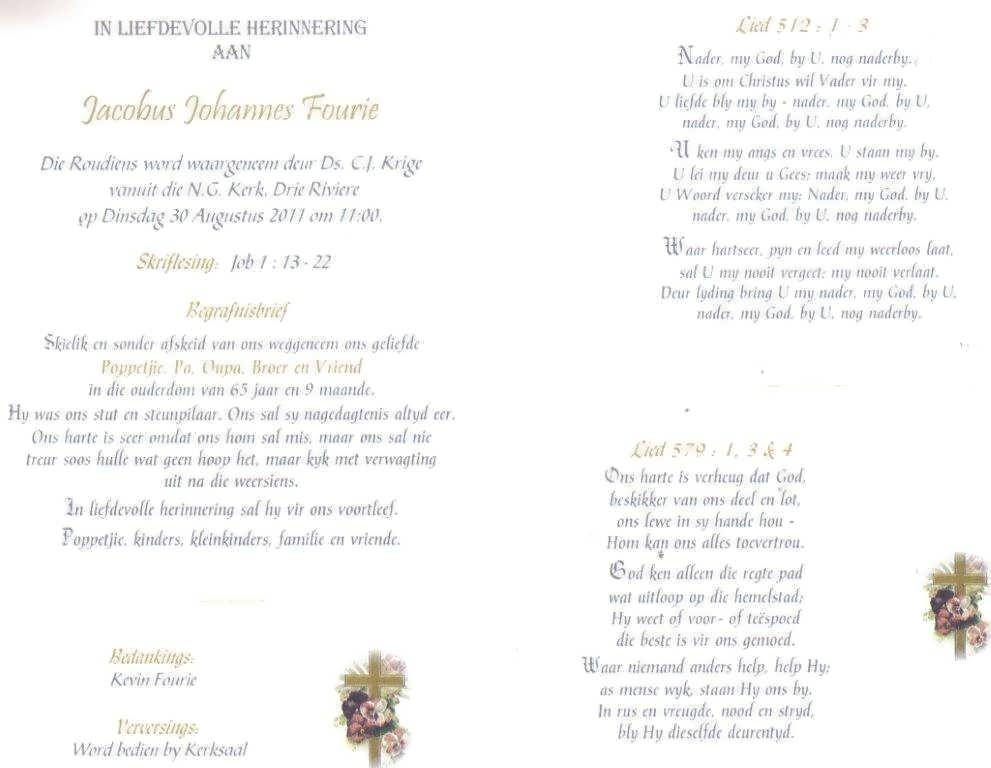 Funeral Programs / Begrafnisbriewe