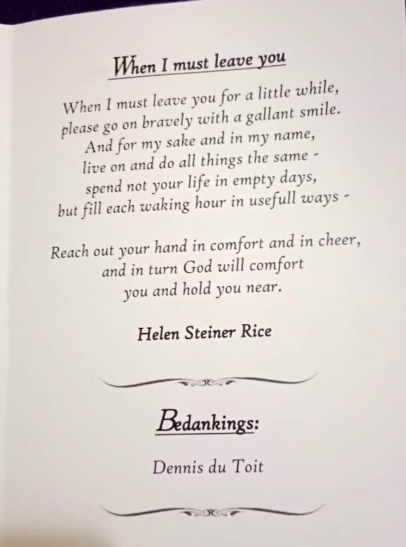 Funeral Programs / Begrafnisbriewe