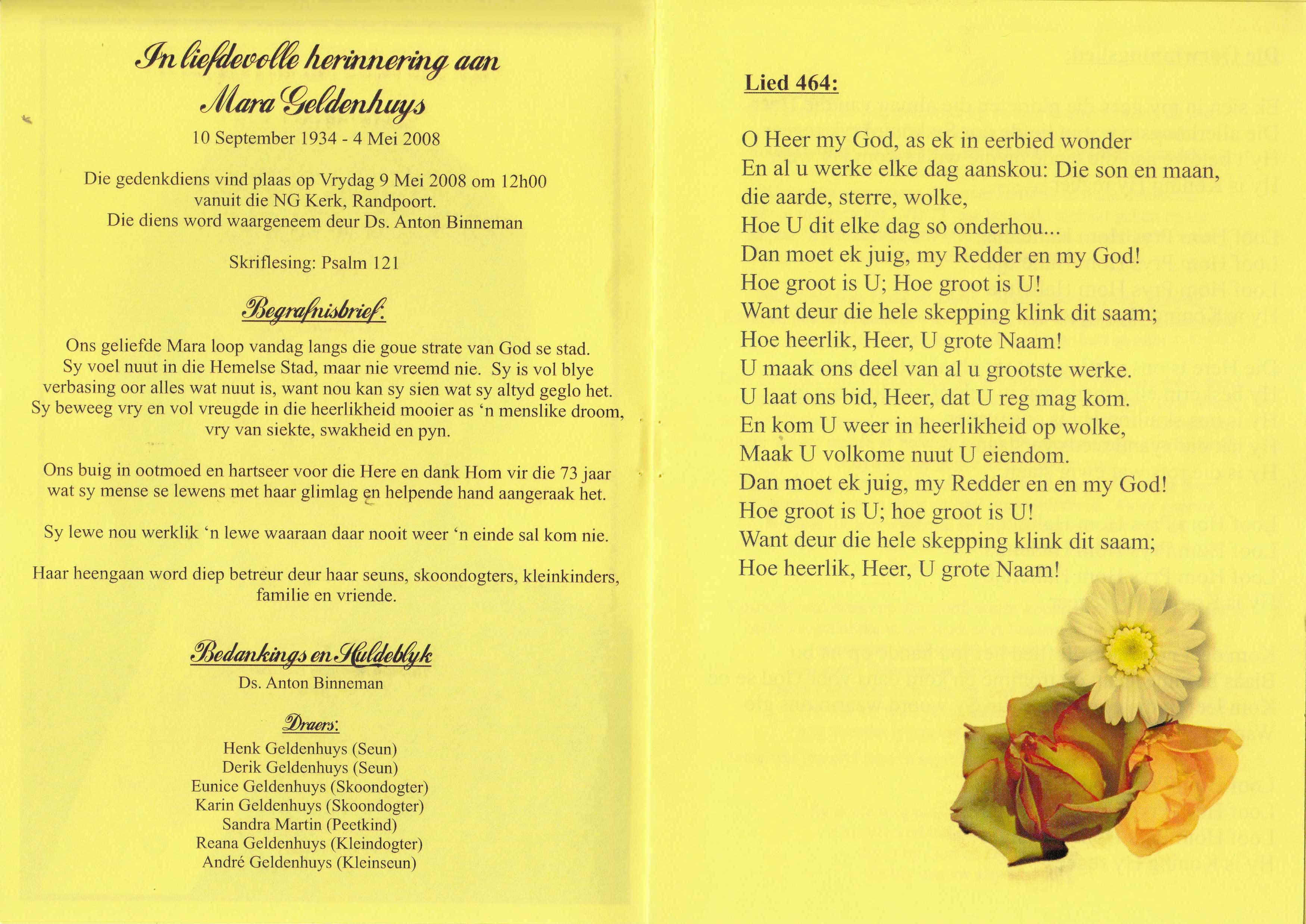 Funeral Programs / Begrafnisbriewe