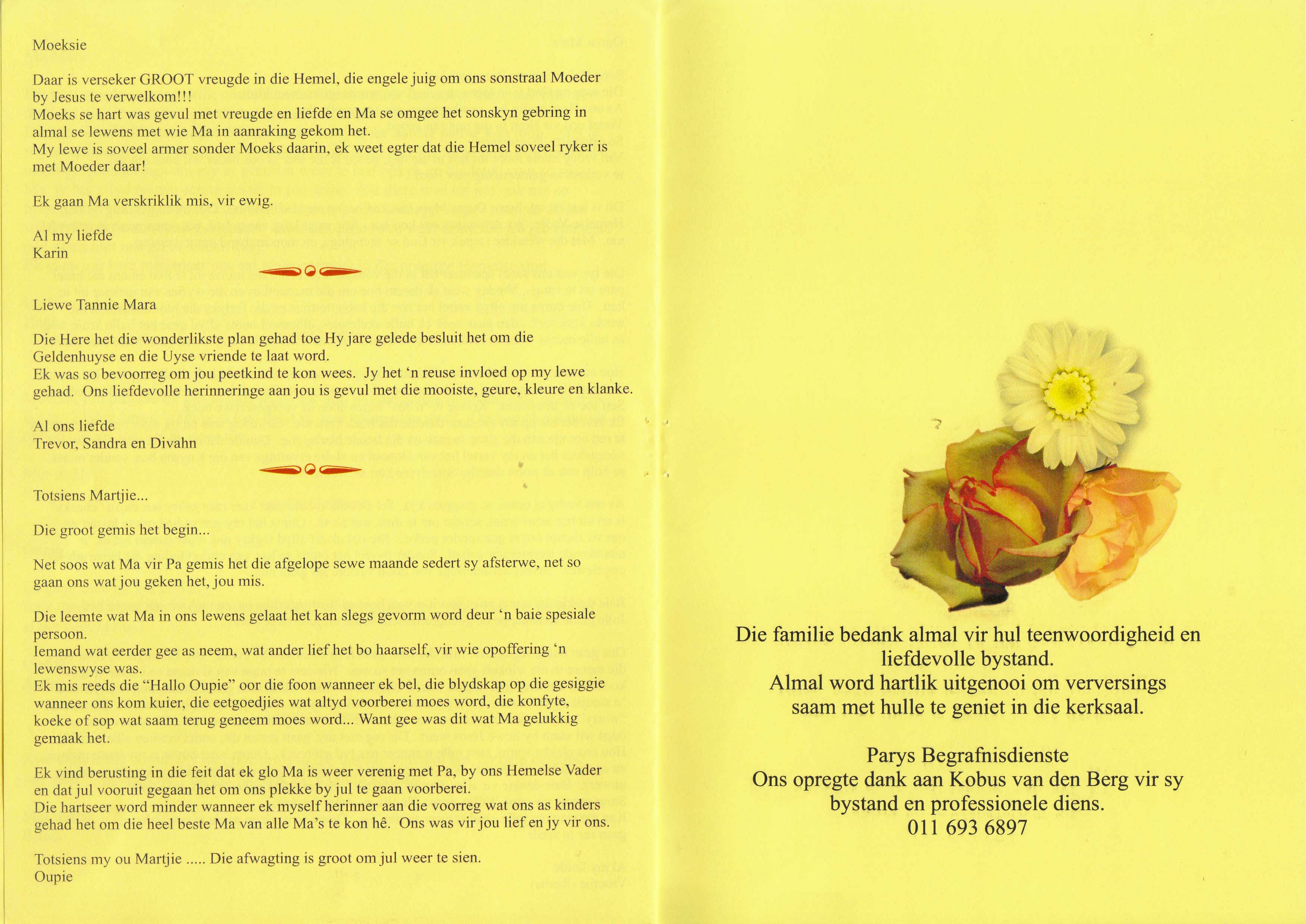 Funeral Programs / Begrafnisbriewe