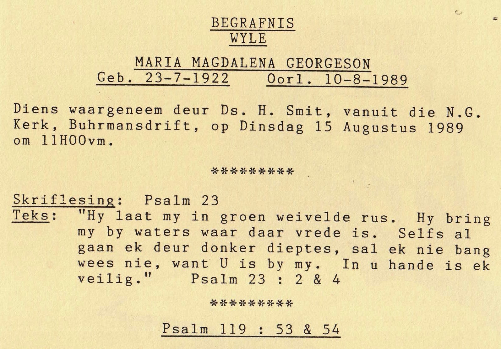 Funeral Programs / Begrafnisbriewe