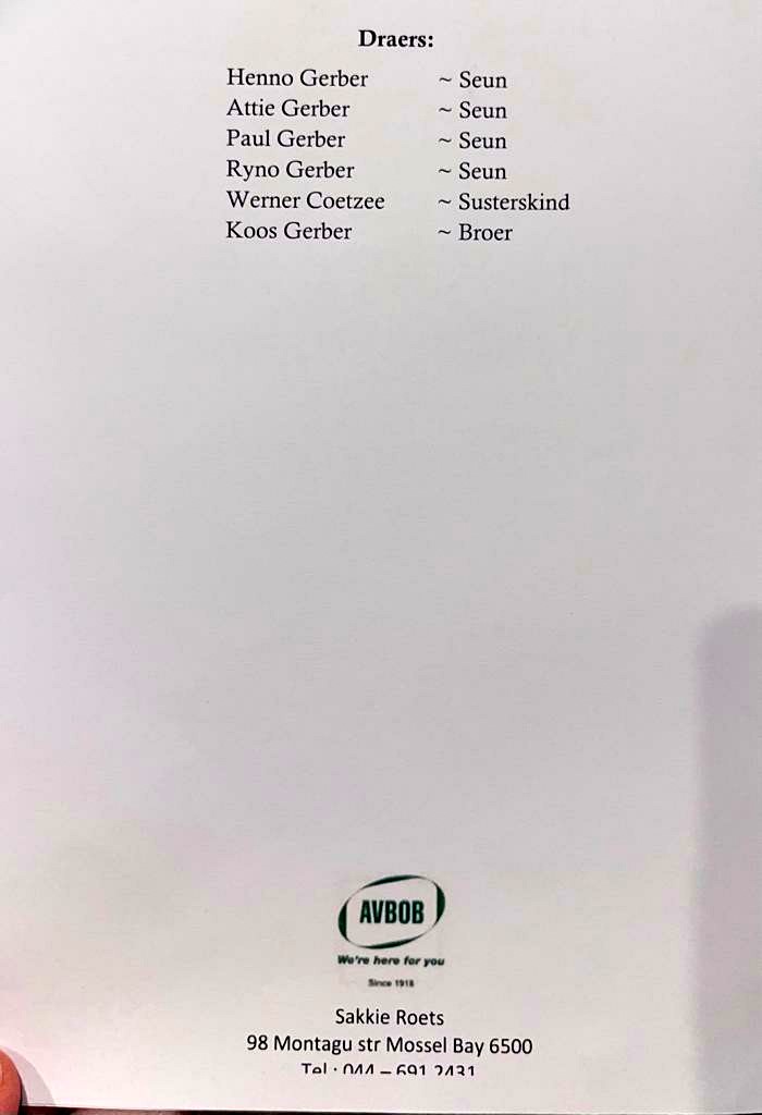 Funeral Programs / Begrafnisbriewe
