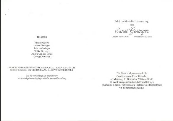 Funeral Programs / Begrafnisbriewe