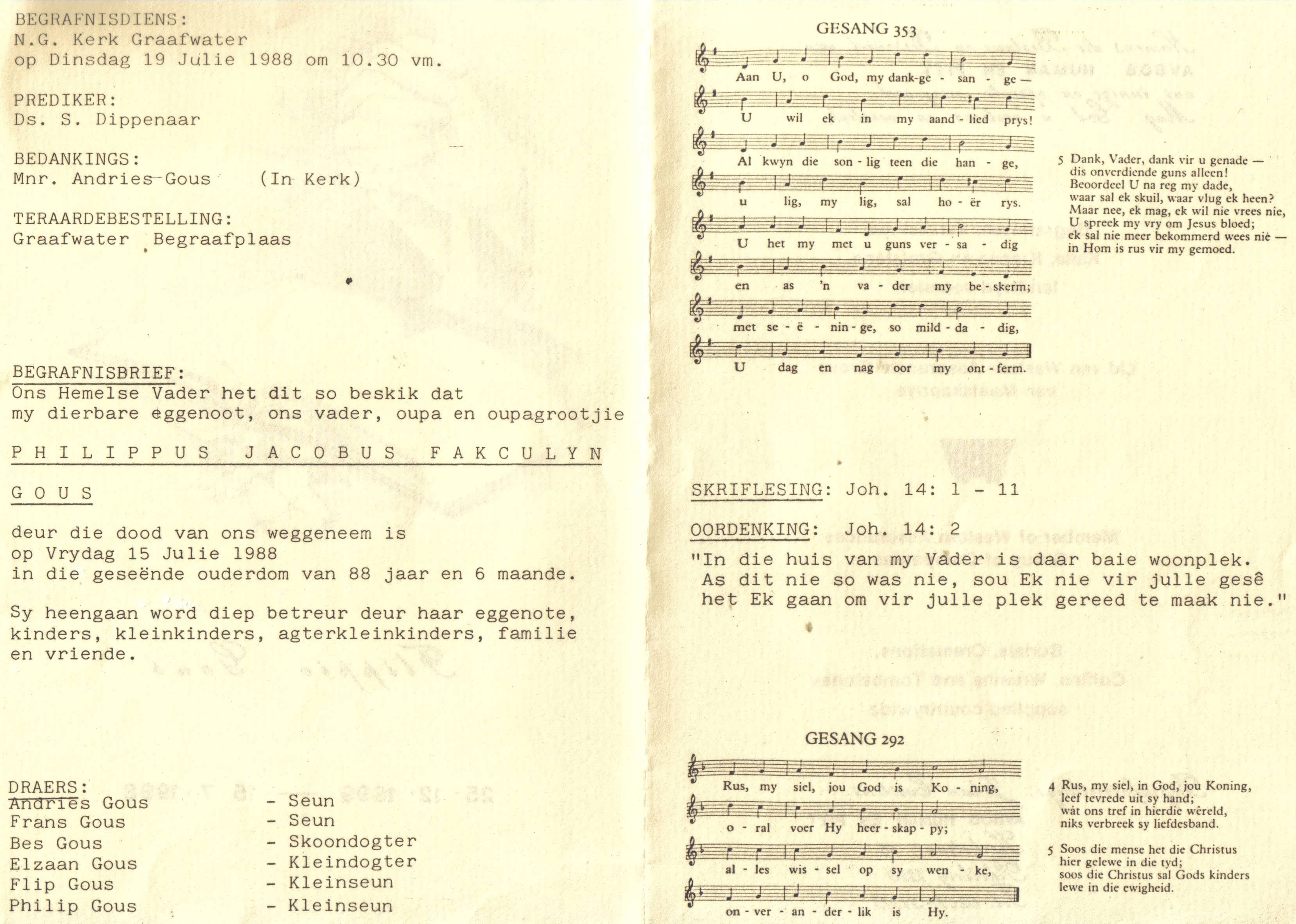 Funeral Programs / Begrafnisbriewe