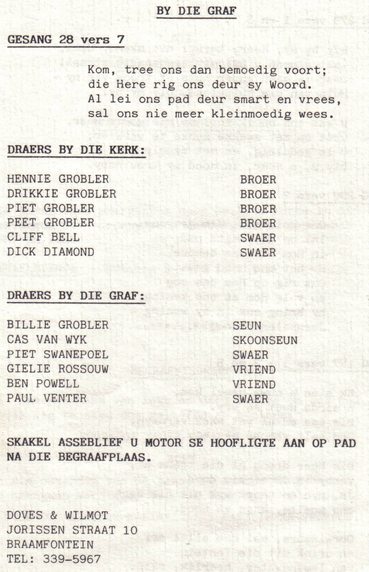 Funeral Programs / Begrafnisbriewe