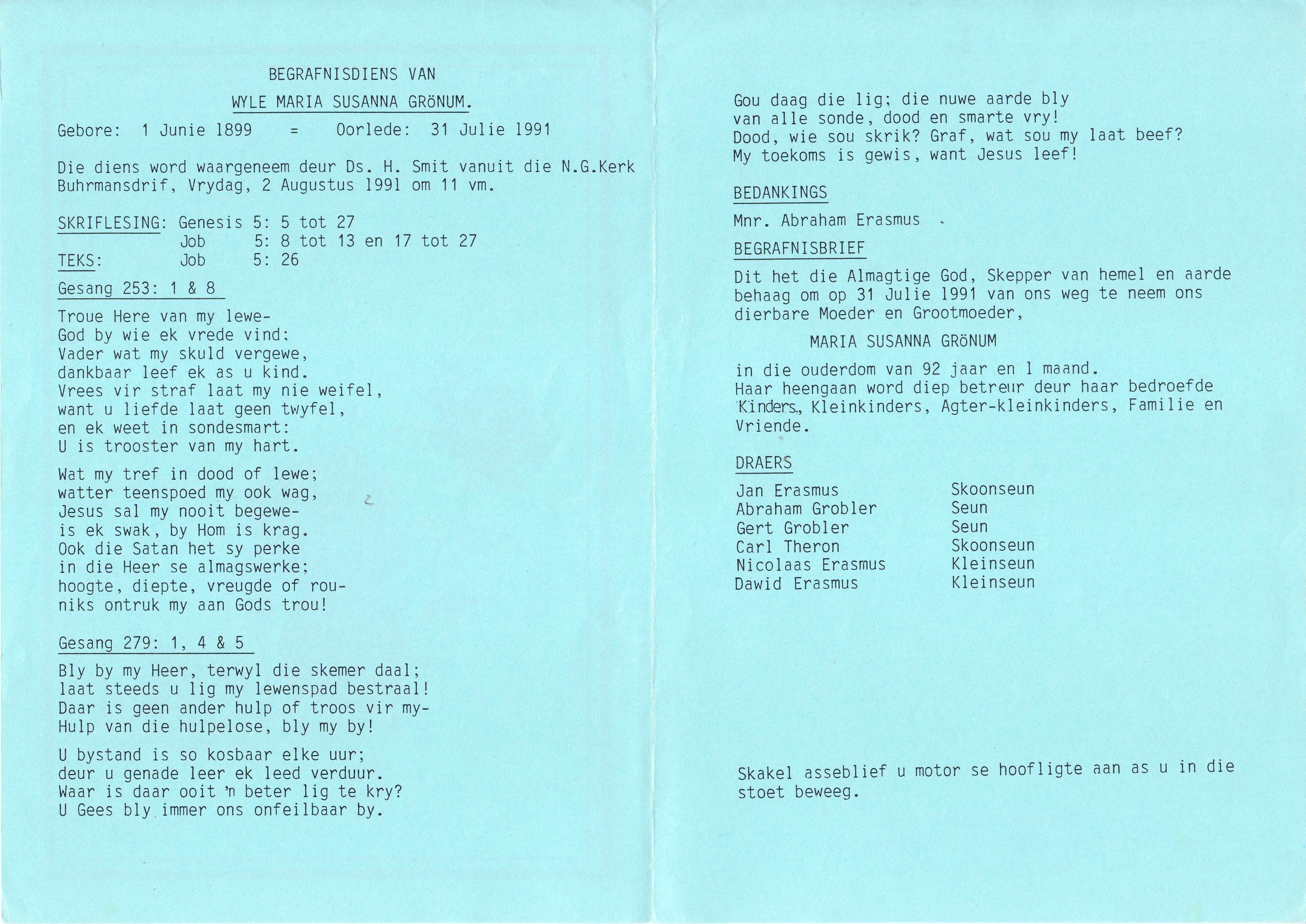 Funeral Programs / Begrafnisbriewe