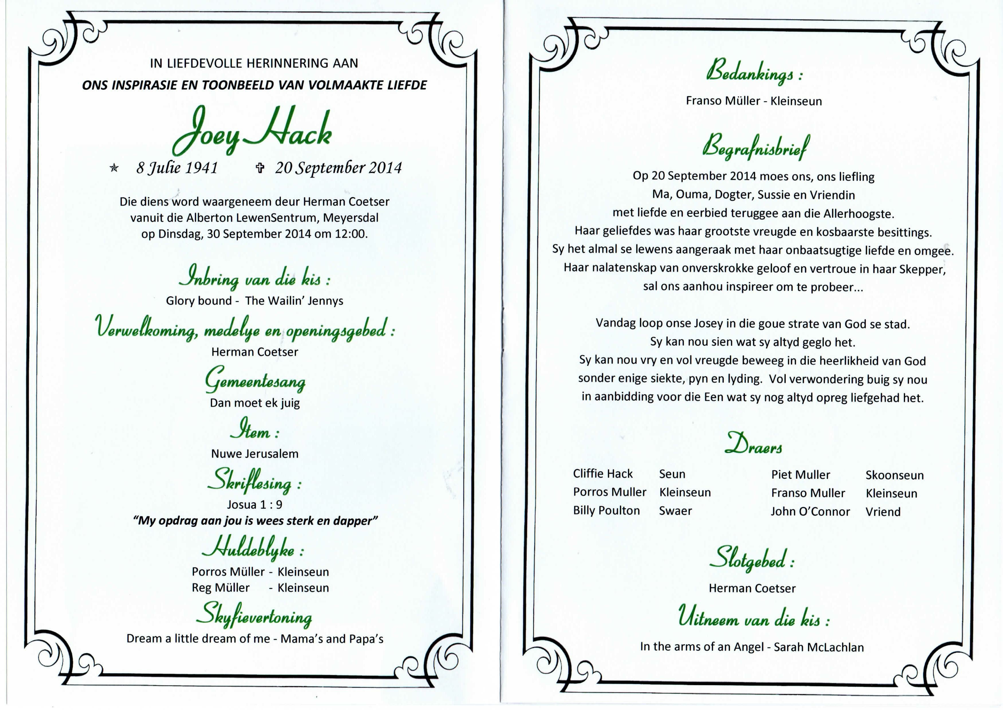 Funeral Programs / Begrafnisbriewe