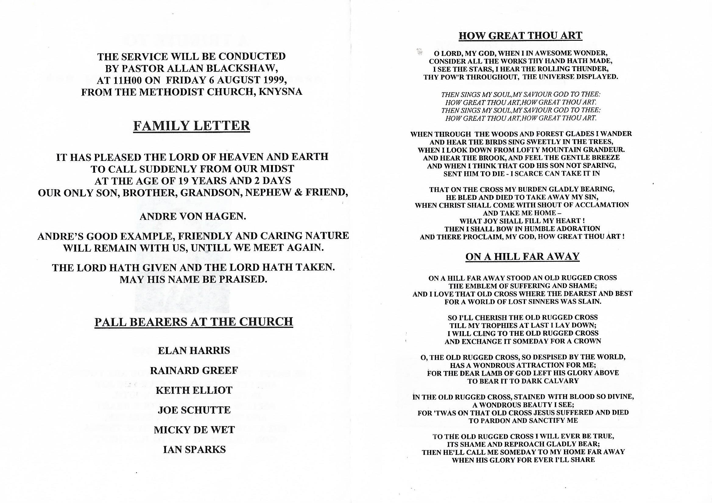 Funeral Programs / Begrafnisbriewe