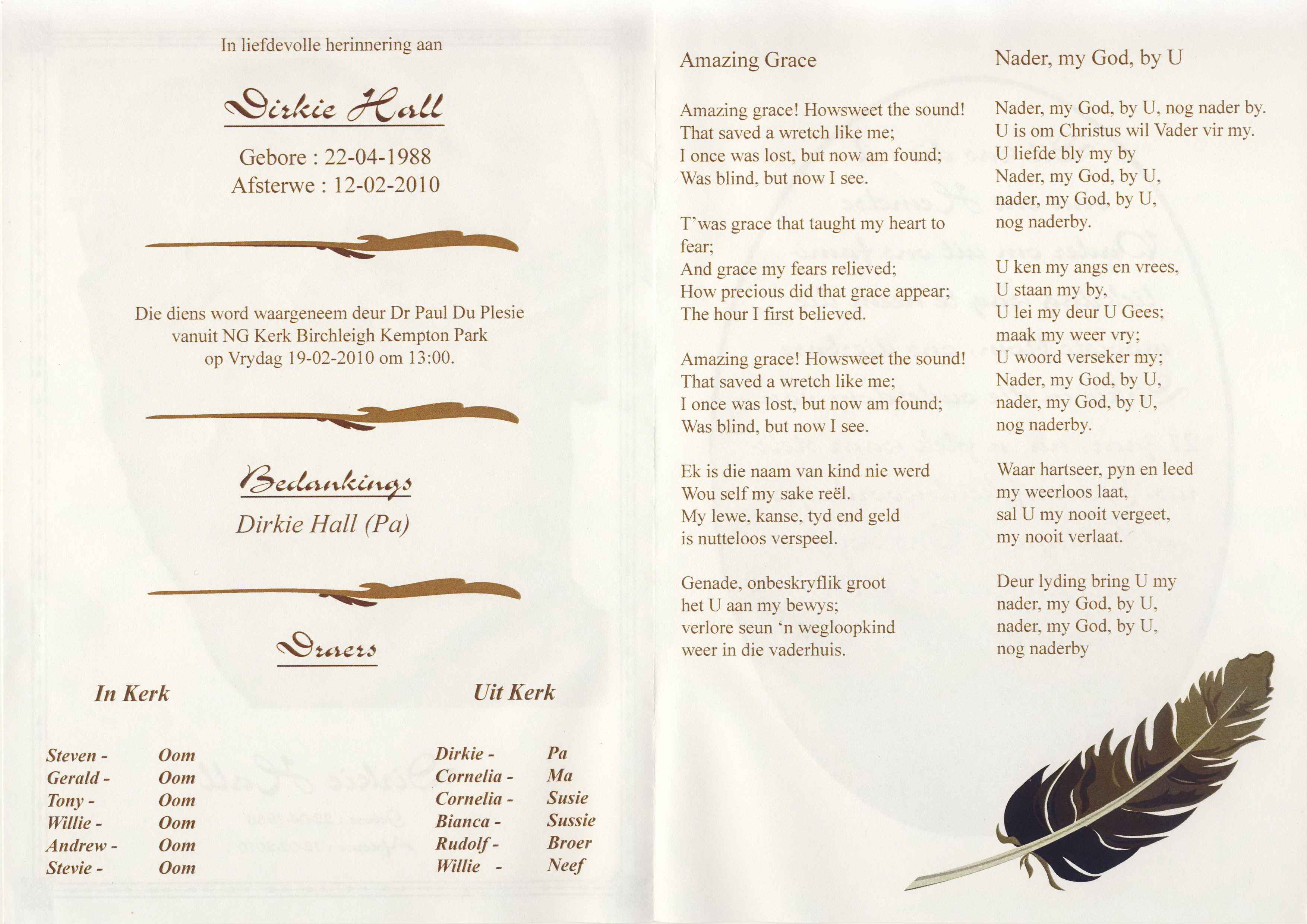 Funeral Programs / Begrafnisbriewe