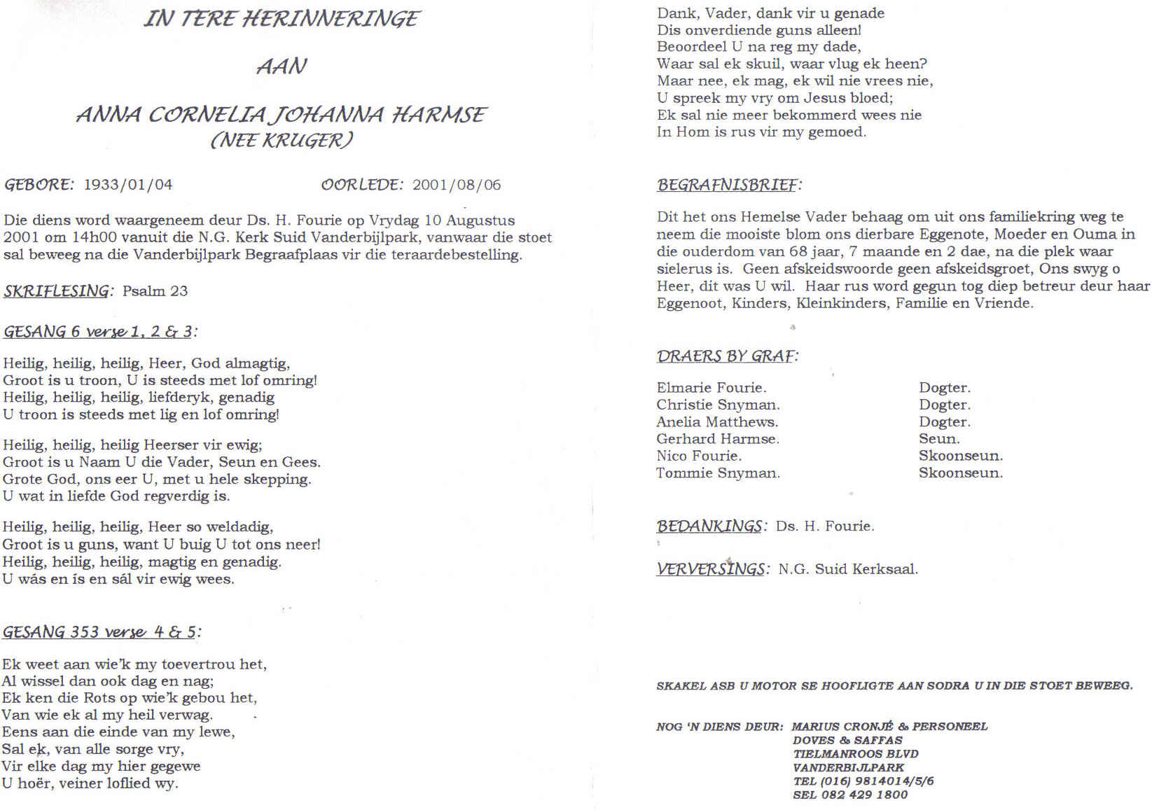 Funeral Programs / Begrafnisbriewe