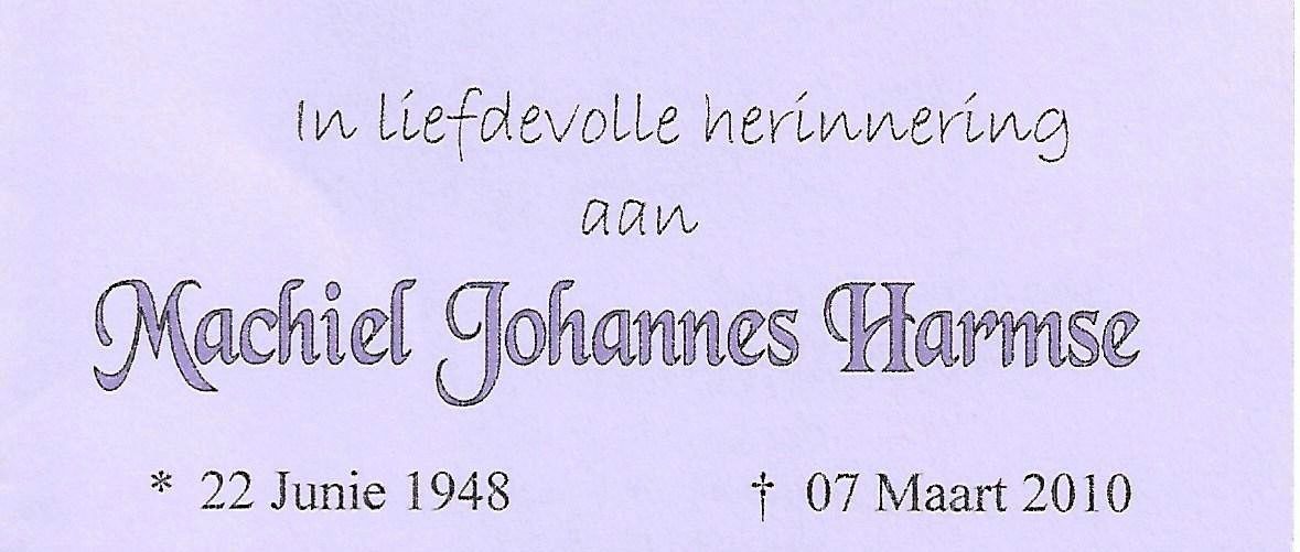 Geneem vanaf Facebook South Africa Funeral Letters/Begrafnisbriewe. Erkenning vir die bydrae aan: Alec Waldeck 8 Oct 2021_119/_120 – Machiel Johannes Harmse 22/6/1948 - 7/3/2010. Familysearch G898-DGF