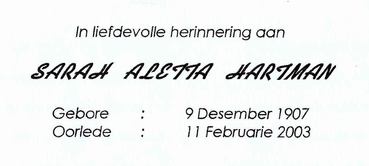 HARTMAN-Sarah-Aletta-1907-2003-F