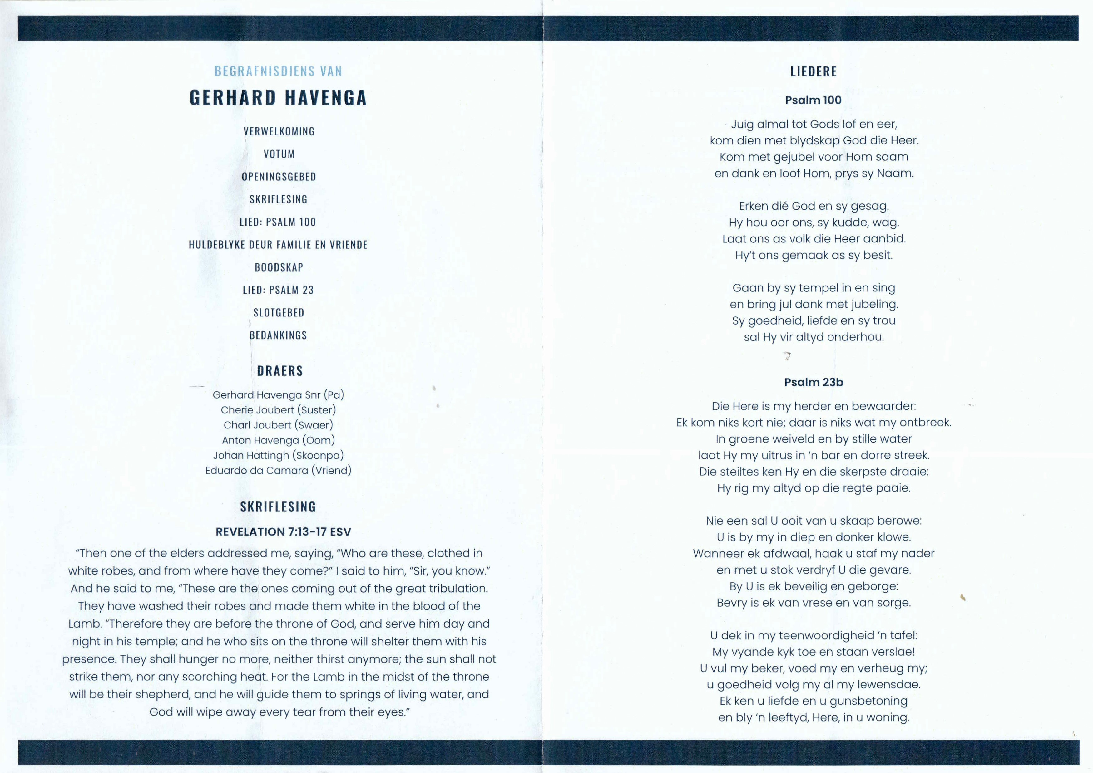 Funeral Programs / Begrafnisbriewe