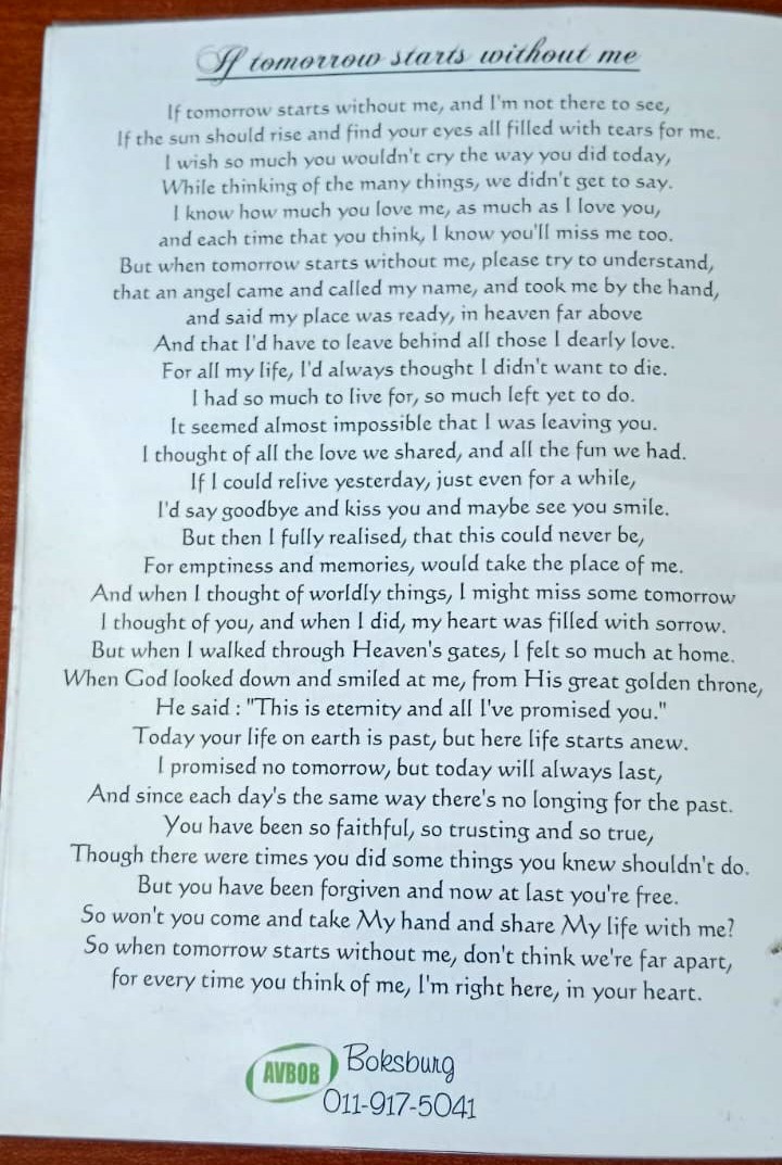 Funeral Programs / Begrafnisbriewe