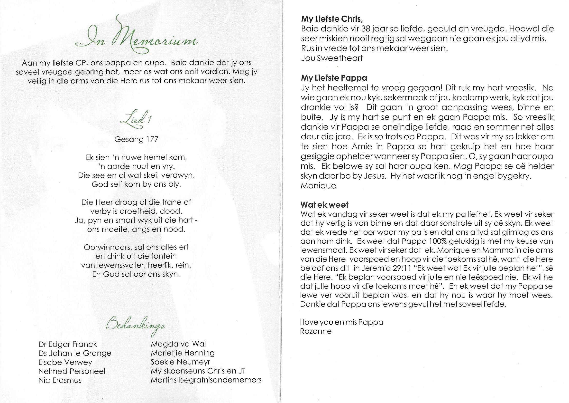 Funeral Programs / Begrafnisbriewe