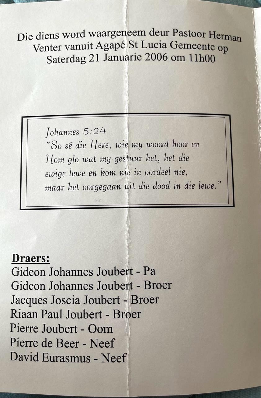 Funeral Programs / Begrafnisbriewe