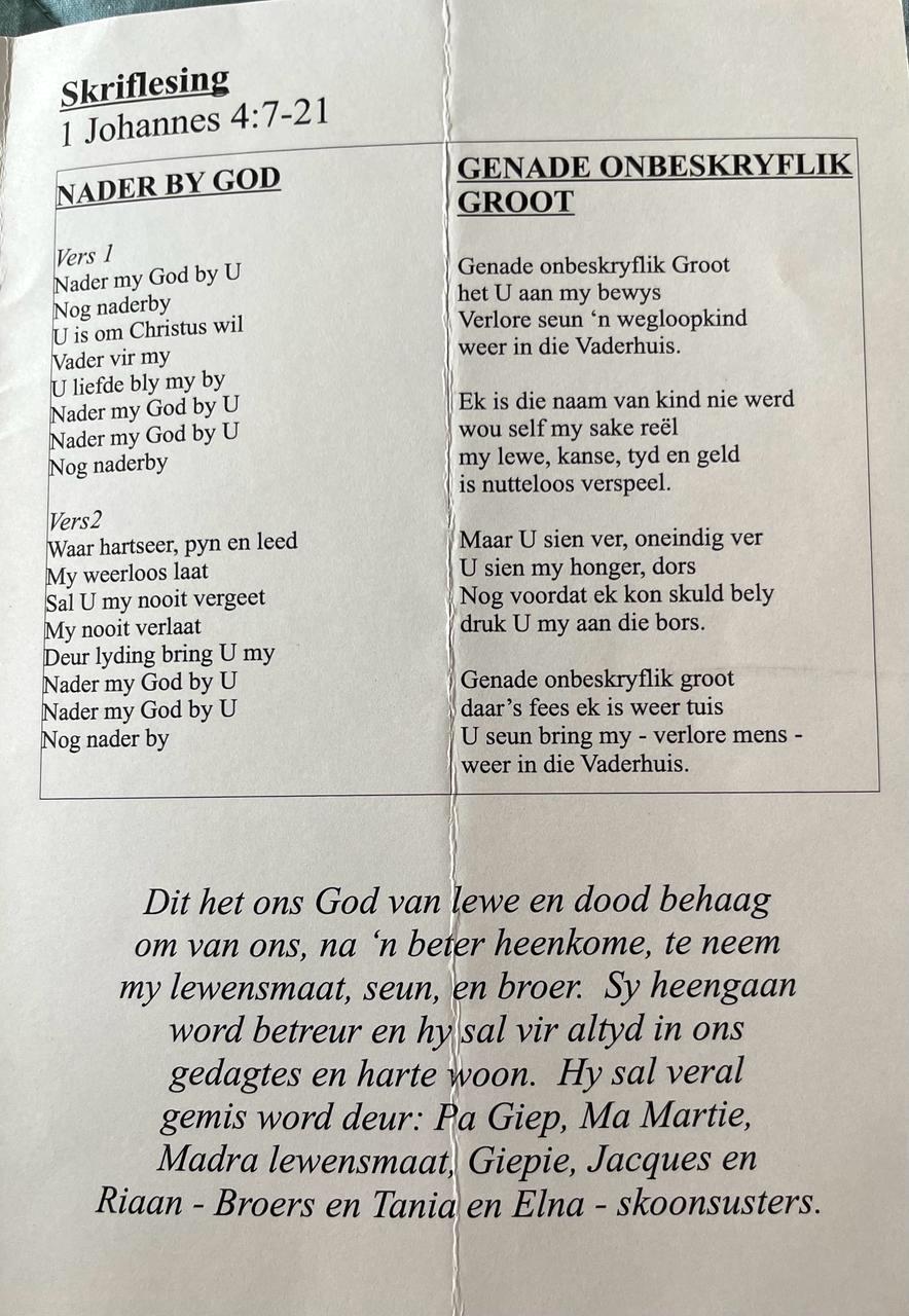 Funeral Programs / Begrafnisbriewe