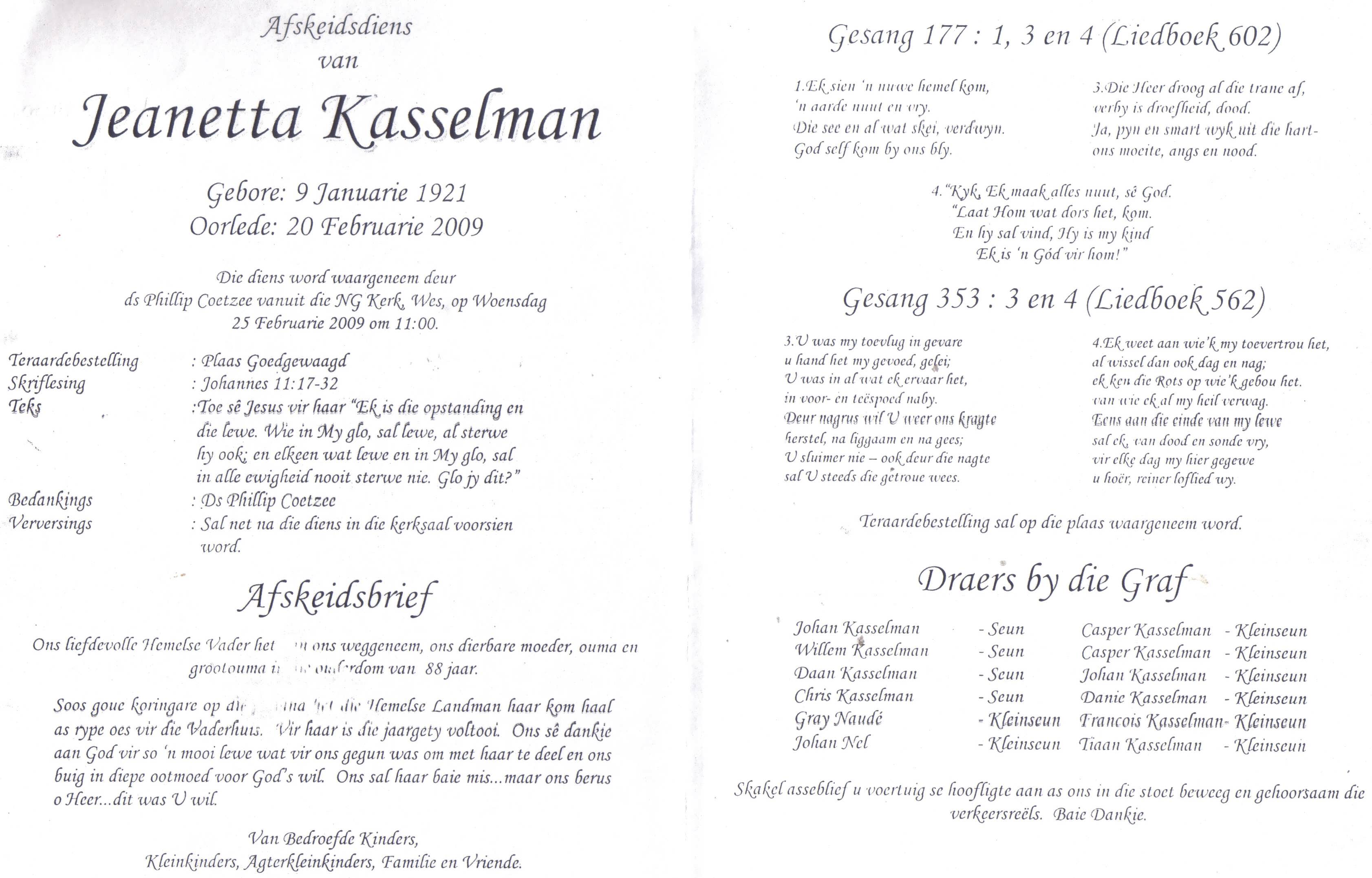 KASSELMAN-Jeanetta-Nn-Nettie-1921-2009-F