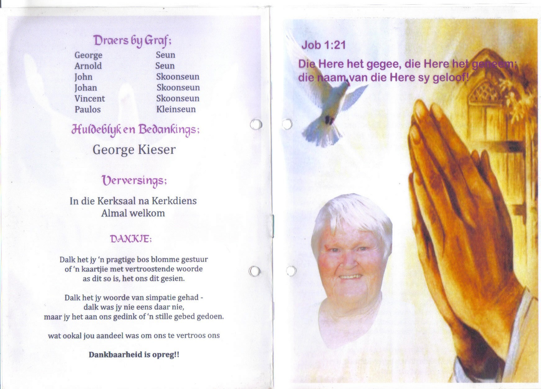 Funeral Programs / Begrafnisbriewe