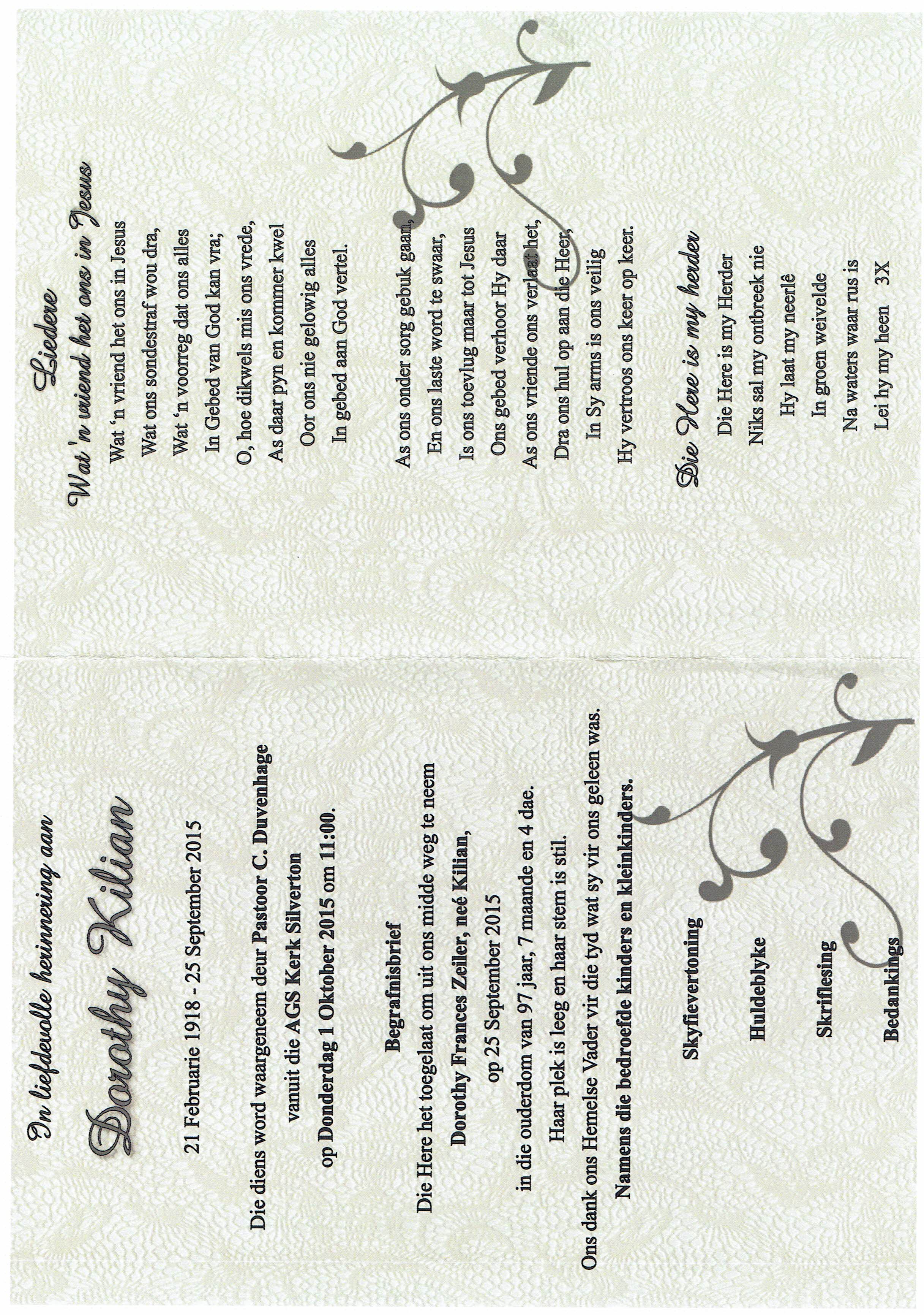 Funeral Programs / Begrafnisbriewe