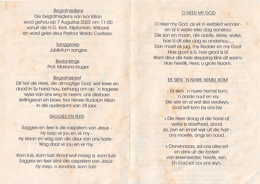 Funeral Programs / Begrafnisbriewe