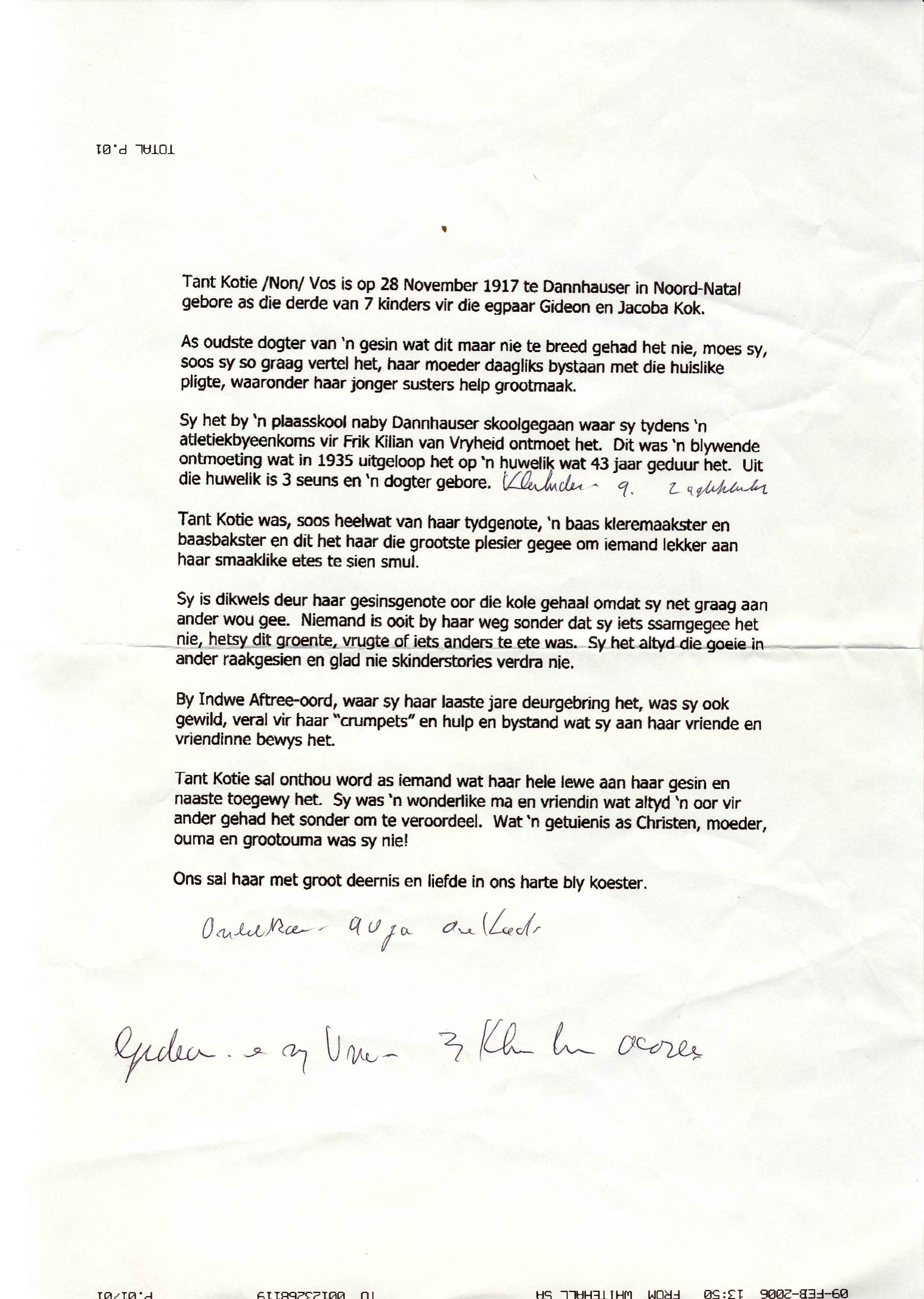 Funeral Programs / Begrafnisbriewe