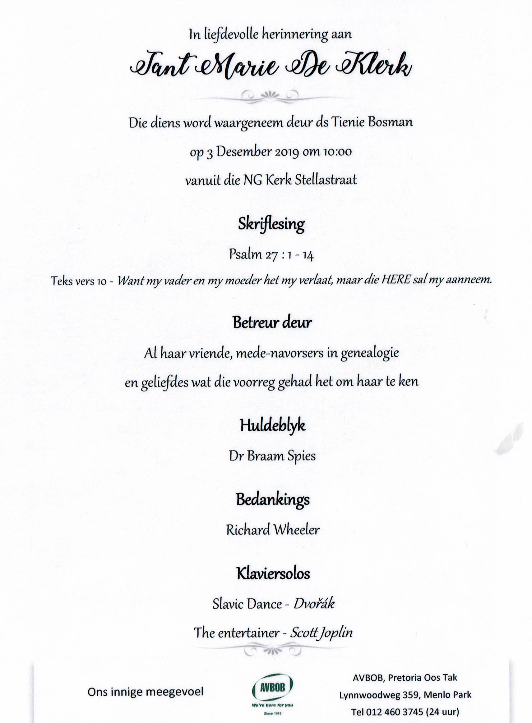 KLERK-DE-Maria-Hester-Nn-Marie-1920-2019-F