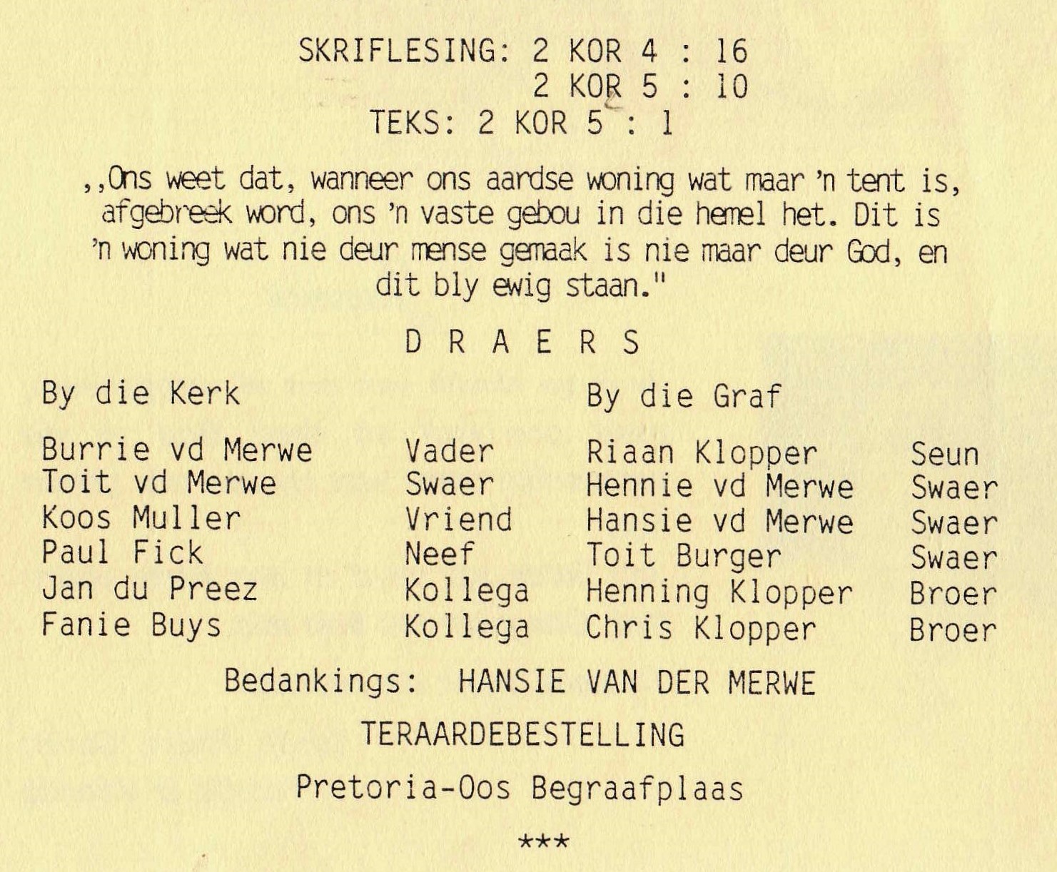 Funeral Programs / Begrafnisbriewe